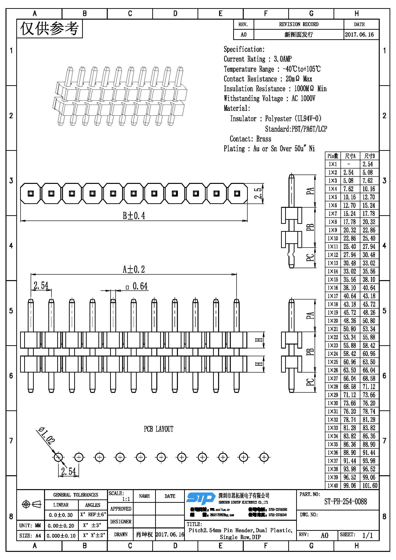 Spec:2.54MM,Pin Header,Dual Plastic,Single Row,Straight