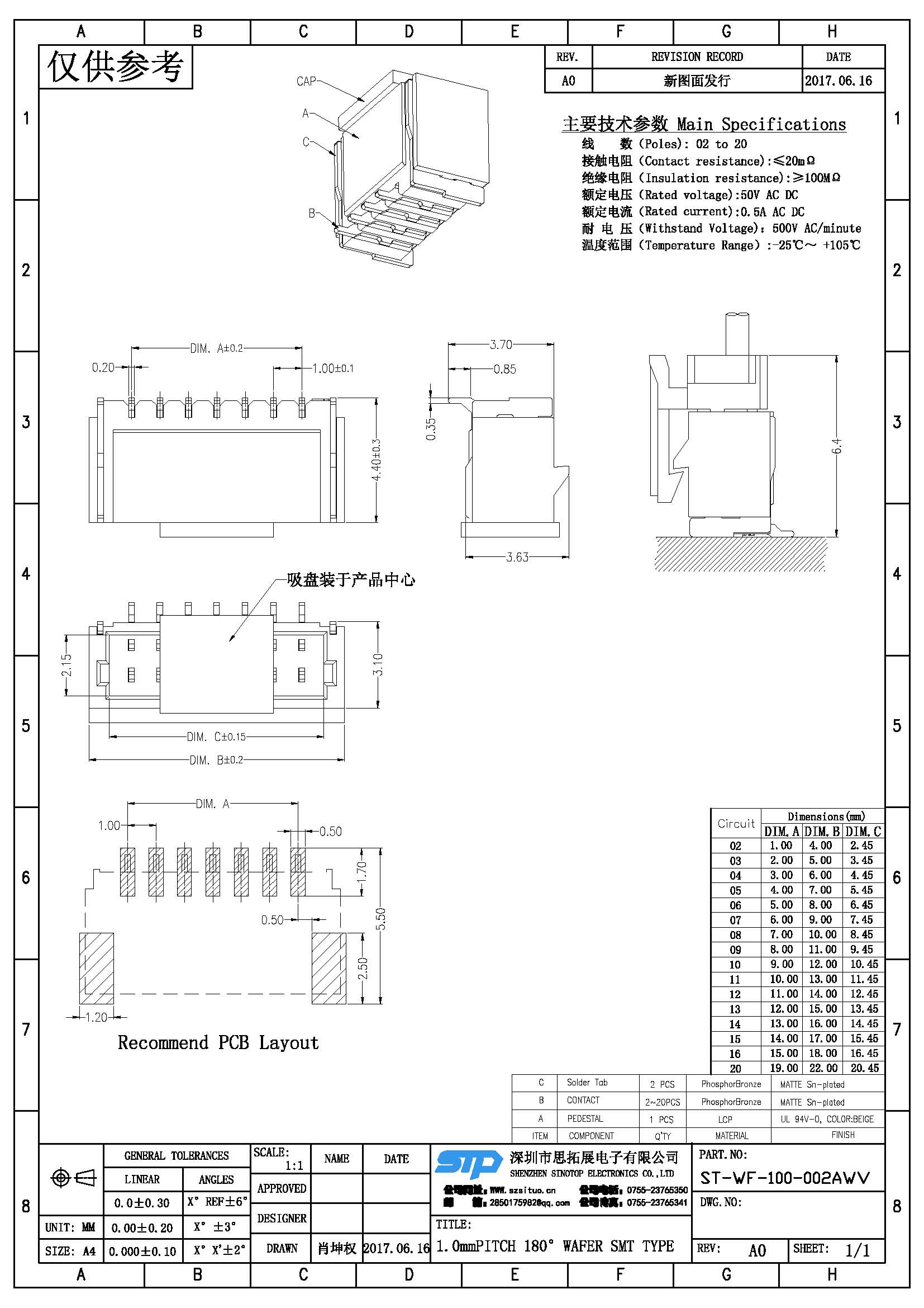 Spec:1.0mm PITCH 180° WAFER SMT TYPE