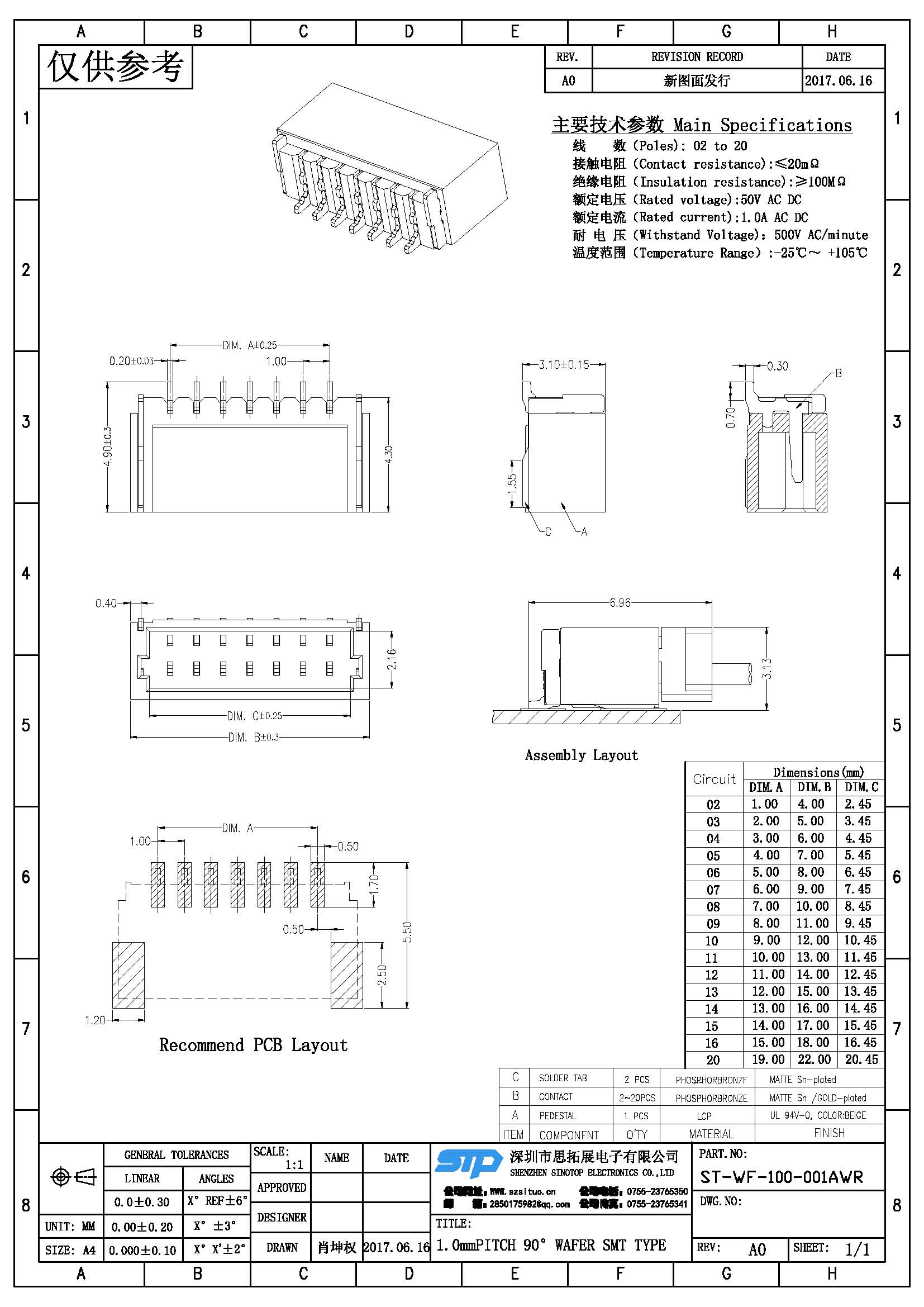 Spec:1.0mm PITCH 90° WAFER SMT TYPE
