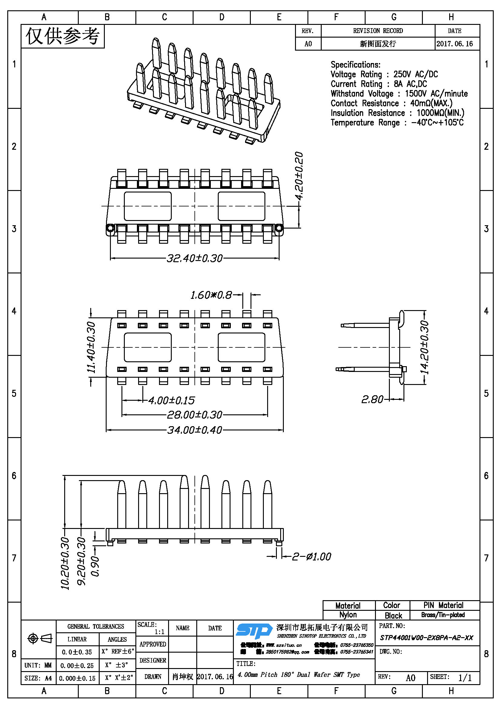 Spec:4.00mm PITCH 180° DUAL WAFER SMT TYPE