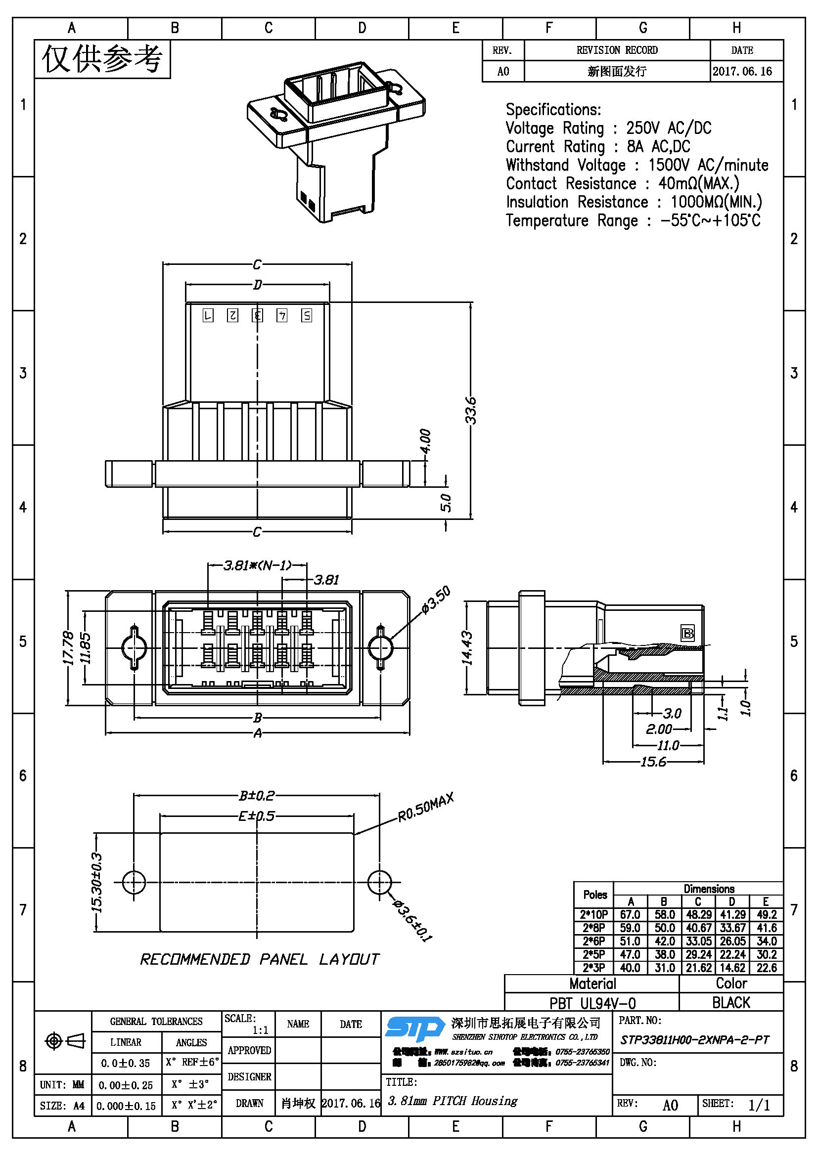 规格型号:3.81MM间距 胶壳