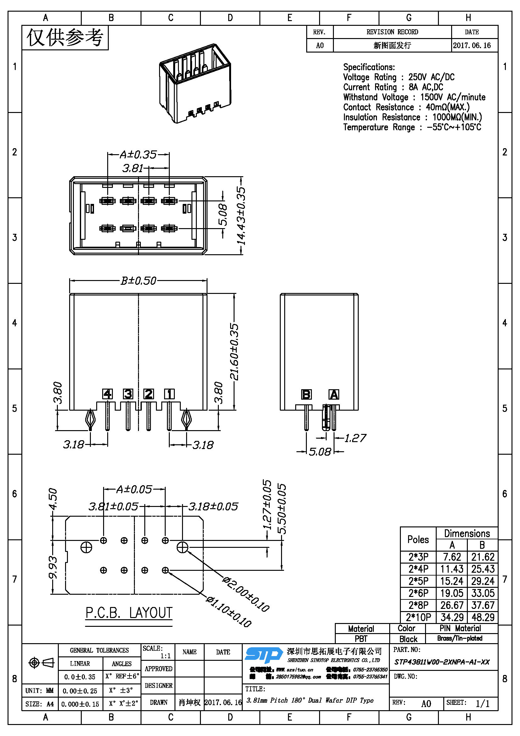 Spec:3.81mm PITCH 180° DUAL WAFER DIP TYPE
