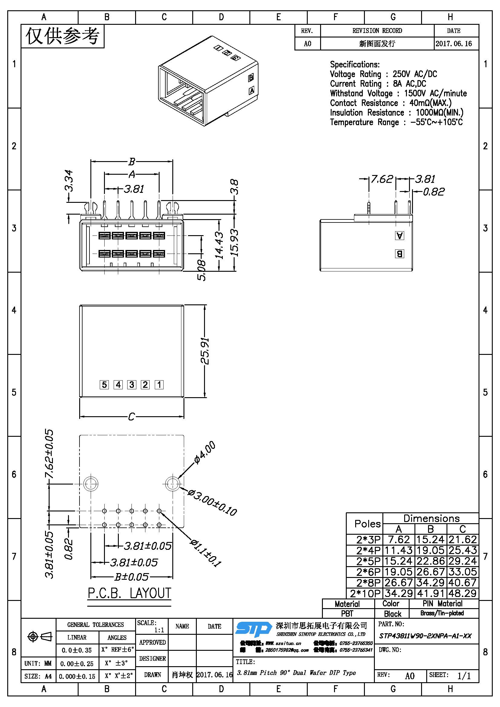 Spec:3.81mm PITCH 90° DUAL WAFER DIP TYPE