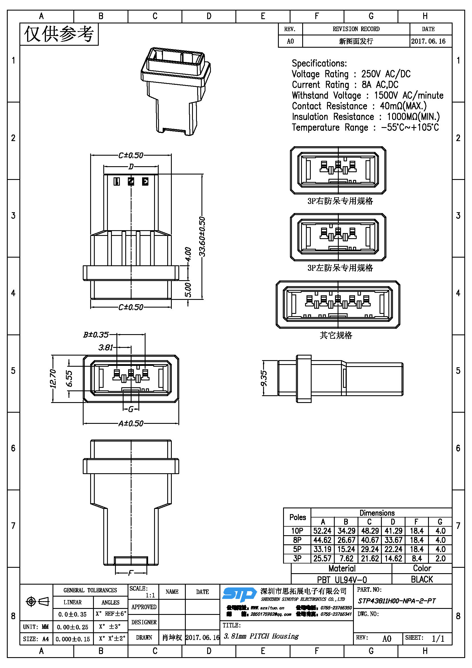 规格型号:3.81MM间距 胶壳