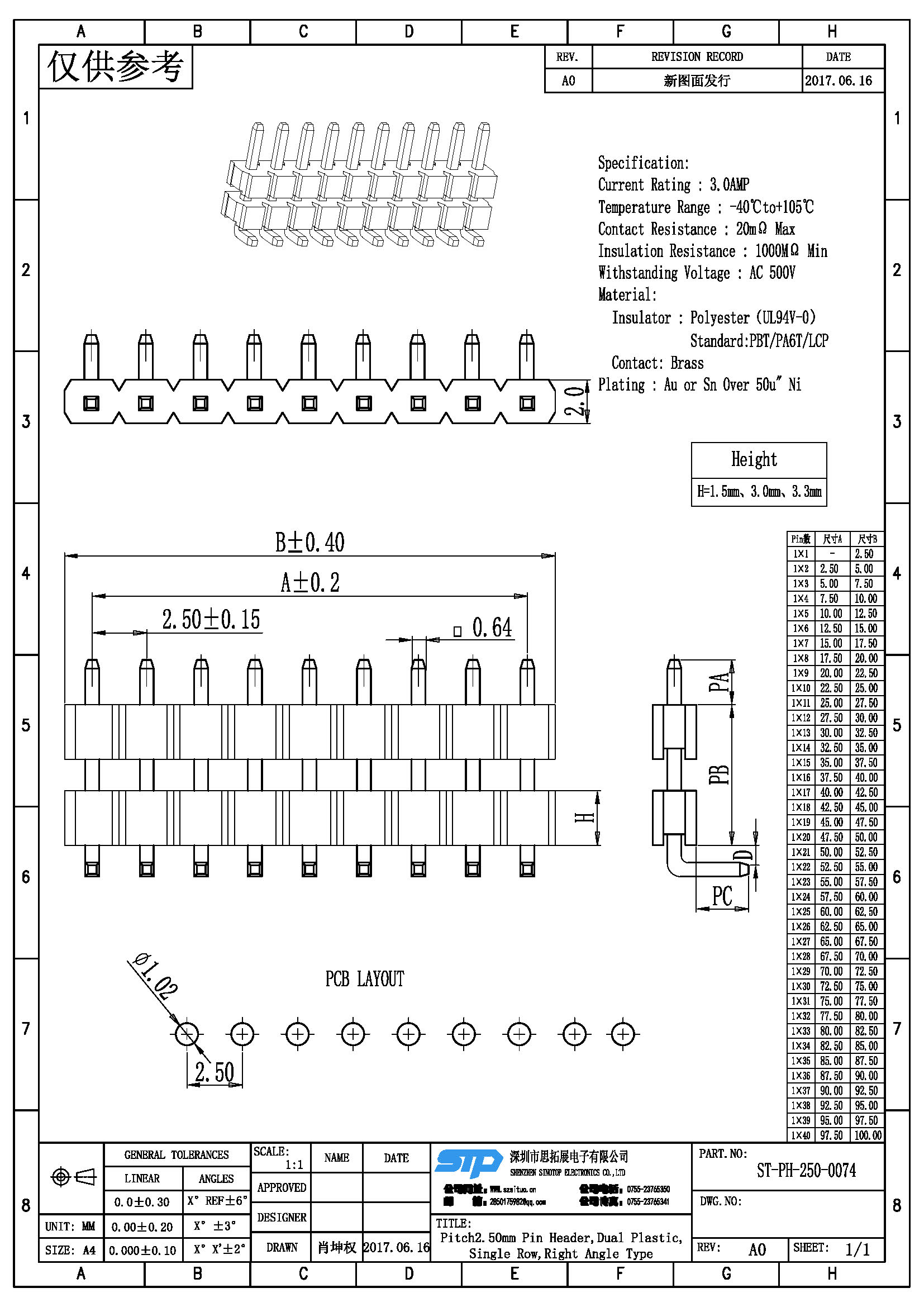 - 产品描述:PIN:1*1P-1*40P H:1.5/2.5/3.0/3.3MM