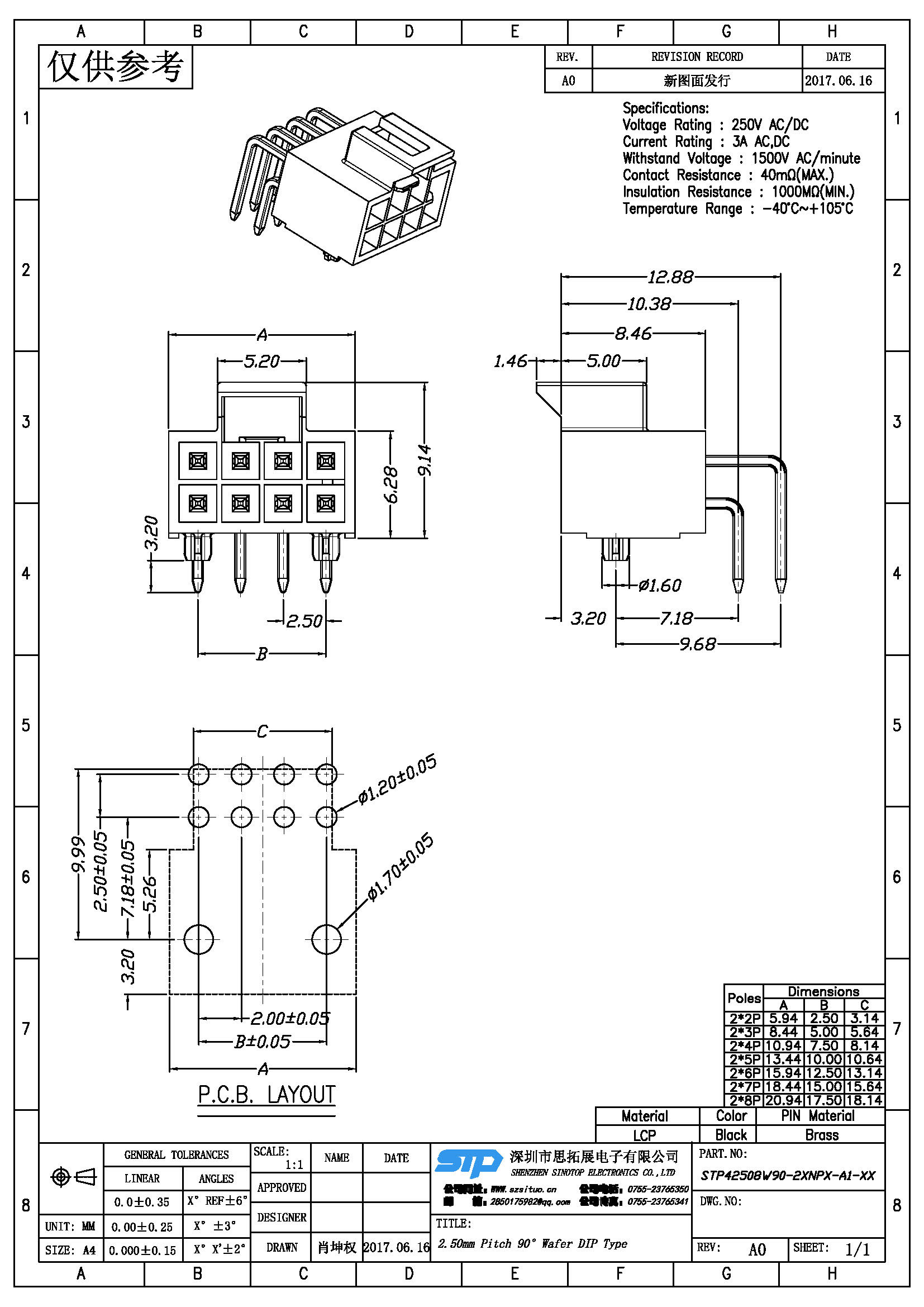 Spec:2.5mm PITCH 90° WAFER DIP TYPE