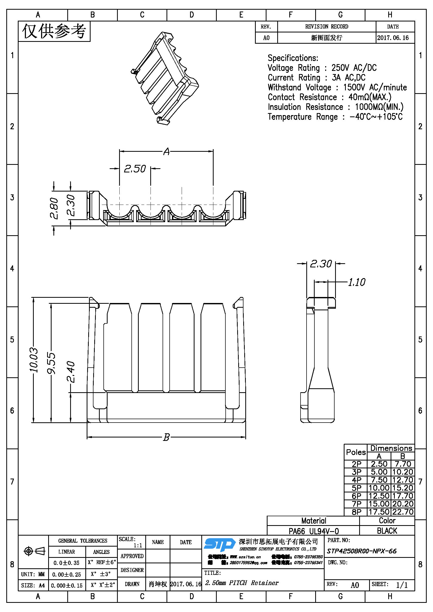 Spec:2.5mm PITCH RETAINER