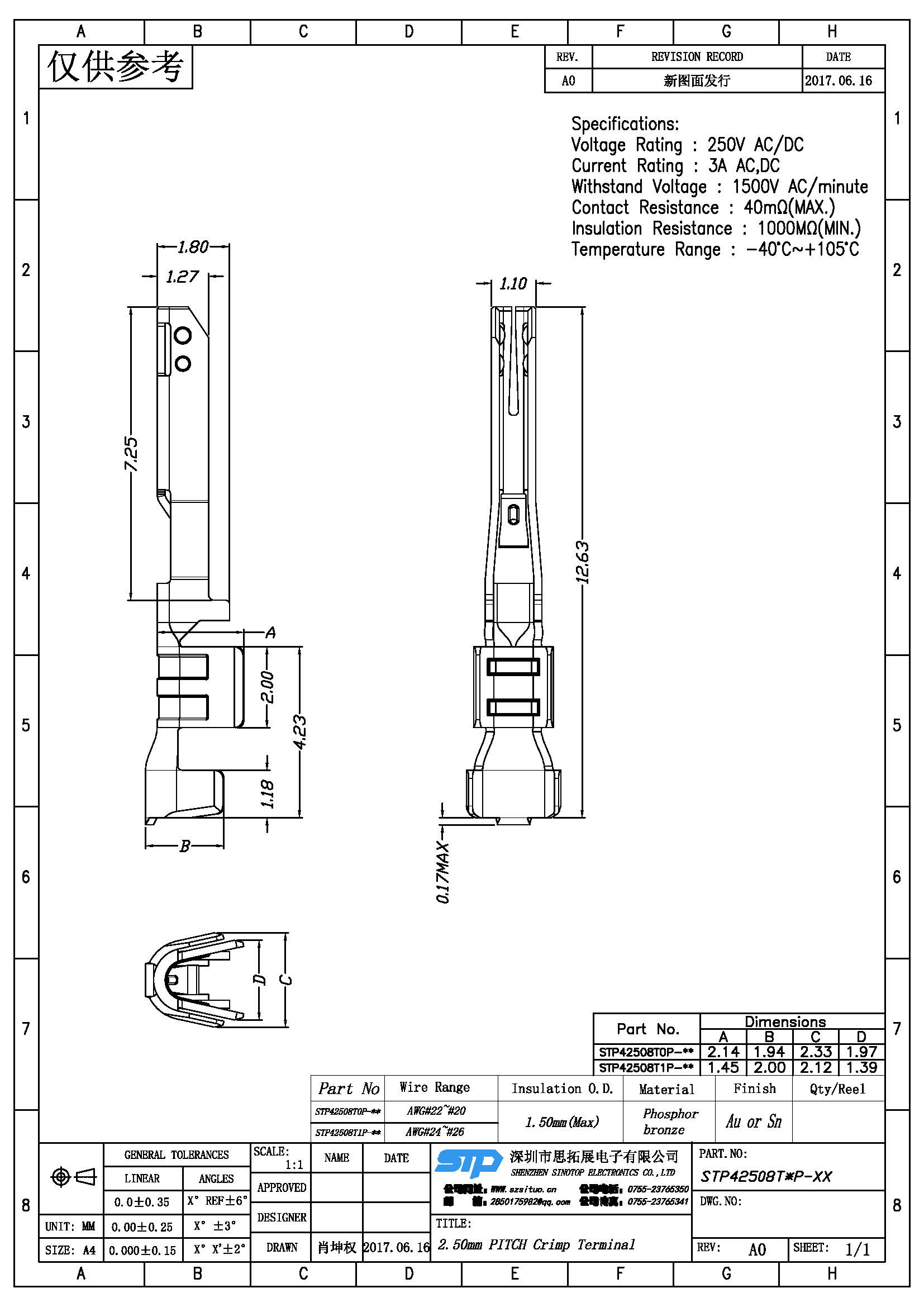 Spec:2.50mm PITCH CRIMP TERMINAL