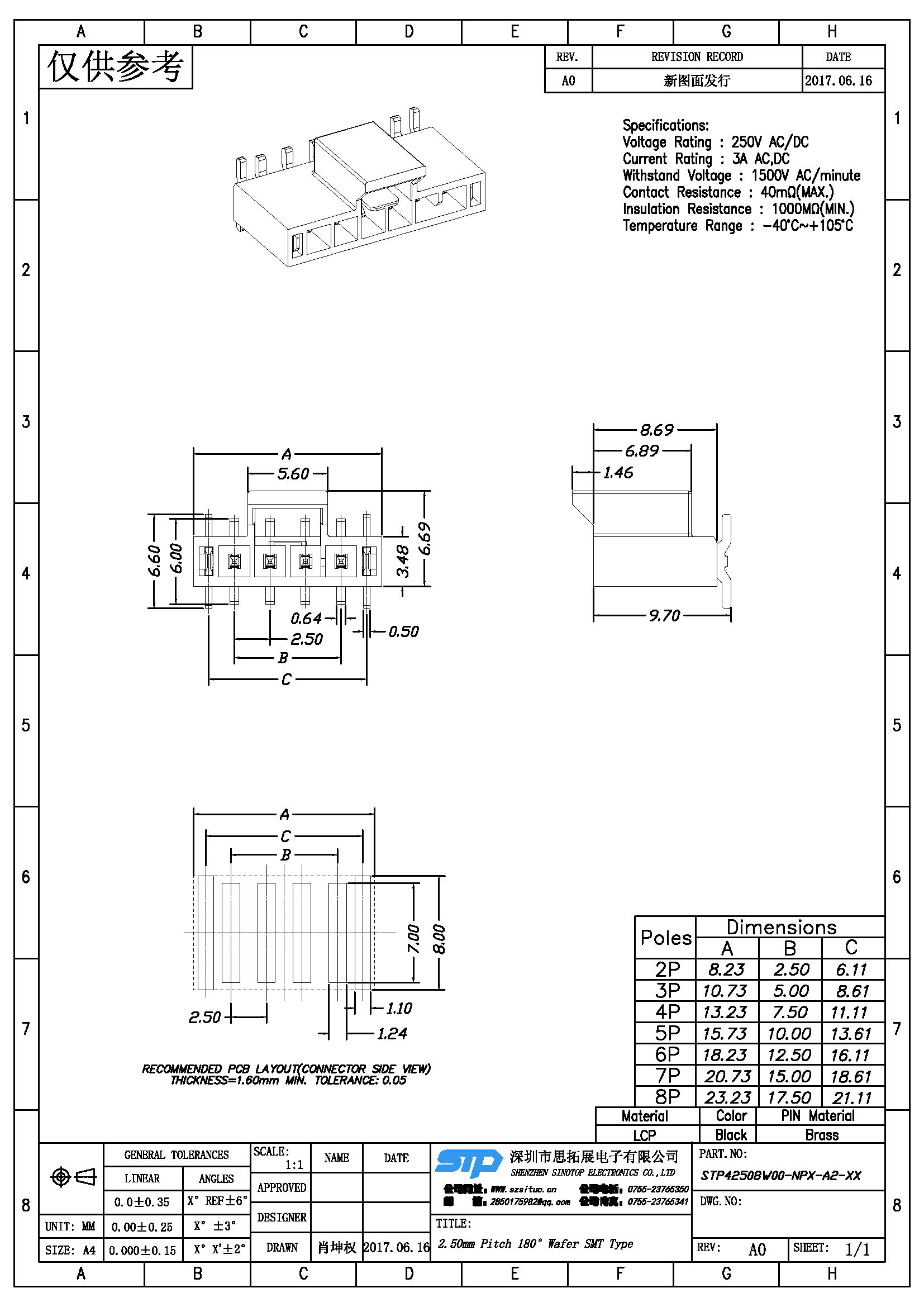 Spec:2.5mm PITCH 180° WAFER SMT TYPE