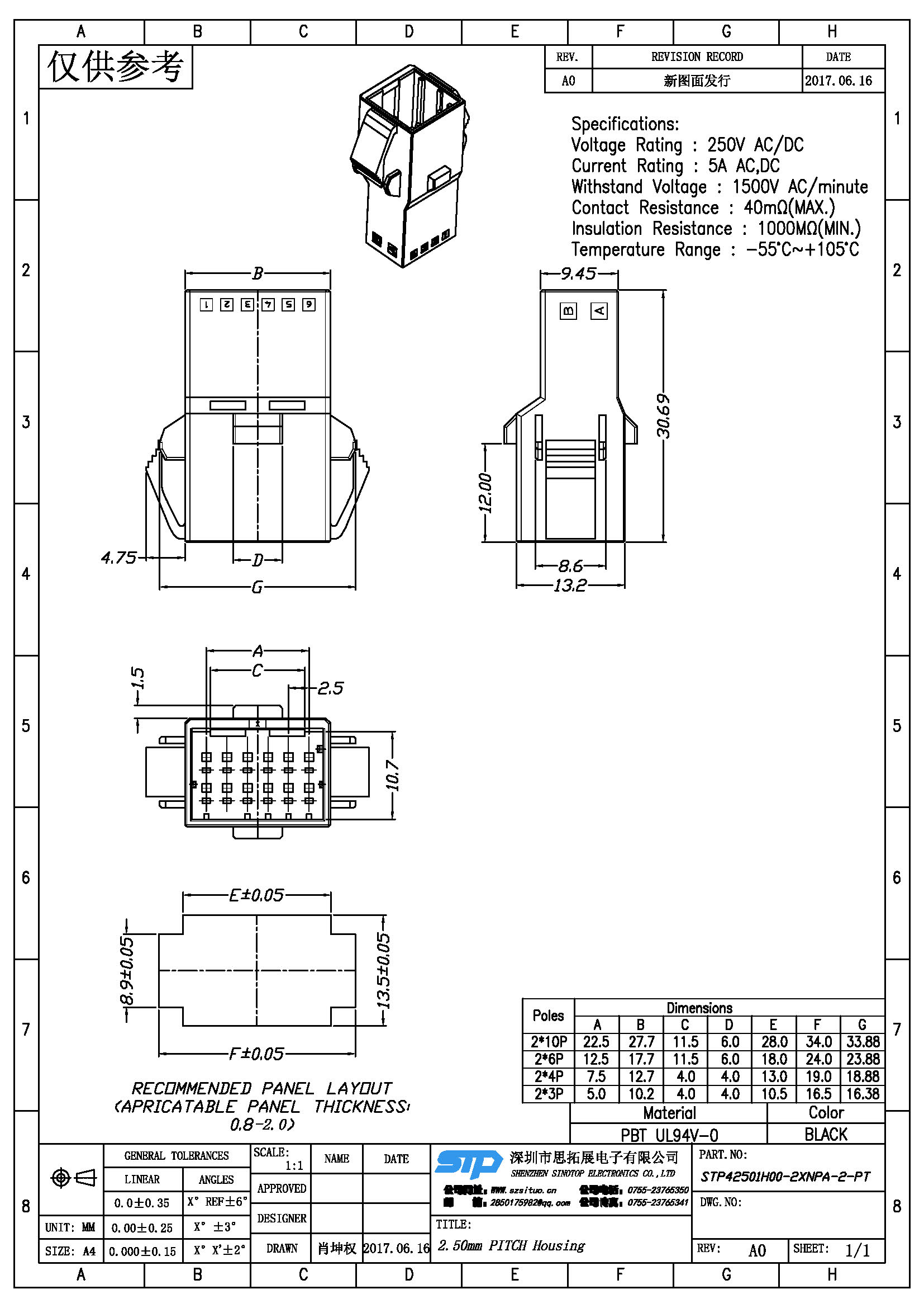 Spec:2.50mm PITCH HOUSING