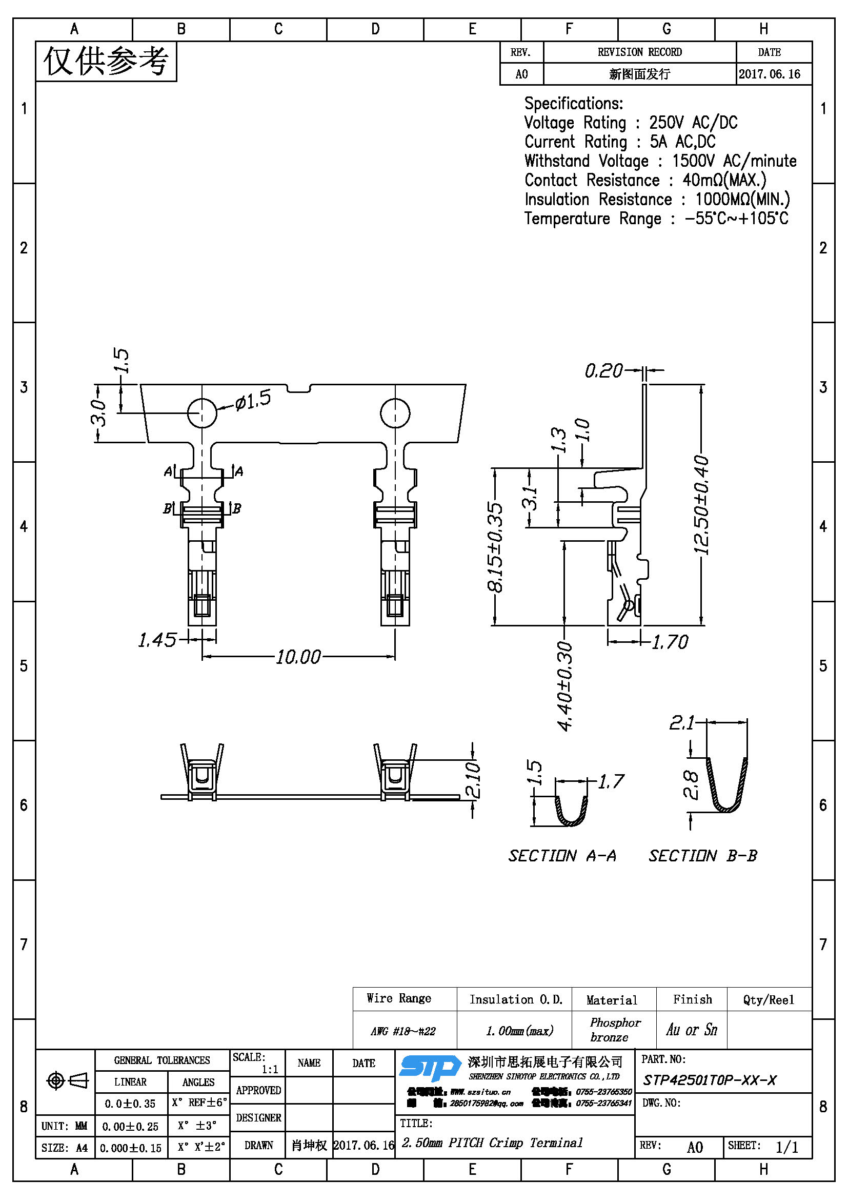 Spec:2.50mm PITCH CRIMP TERMINAL