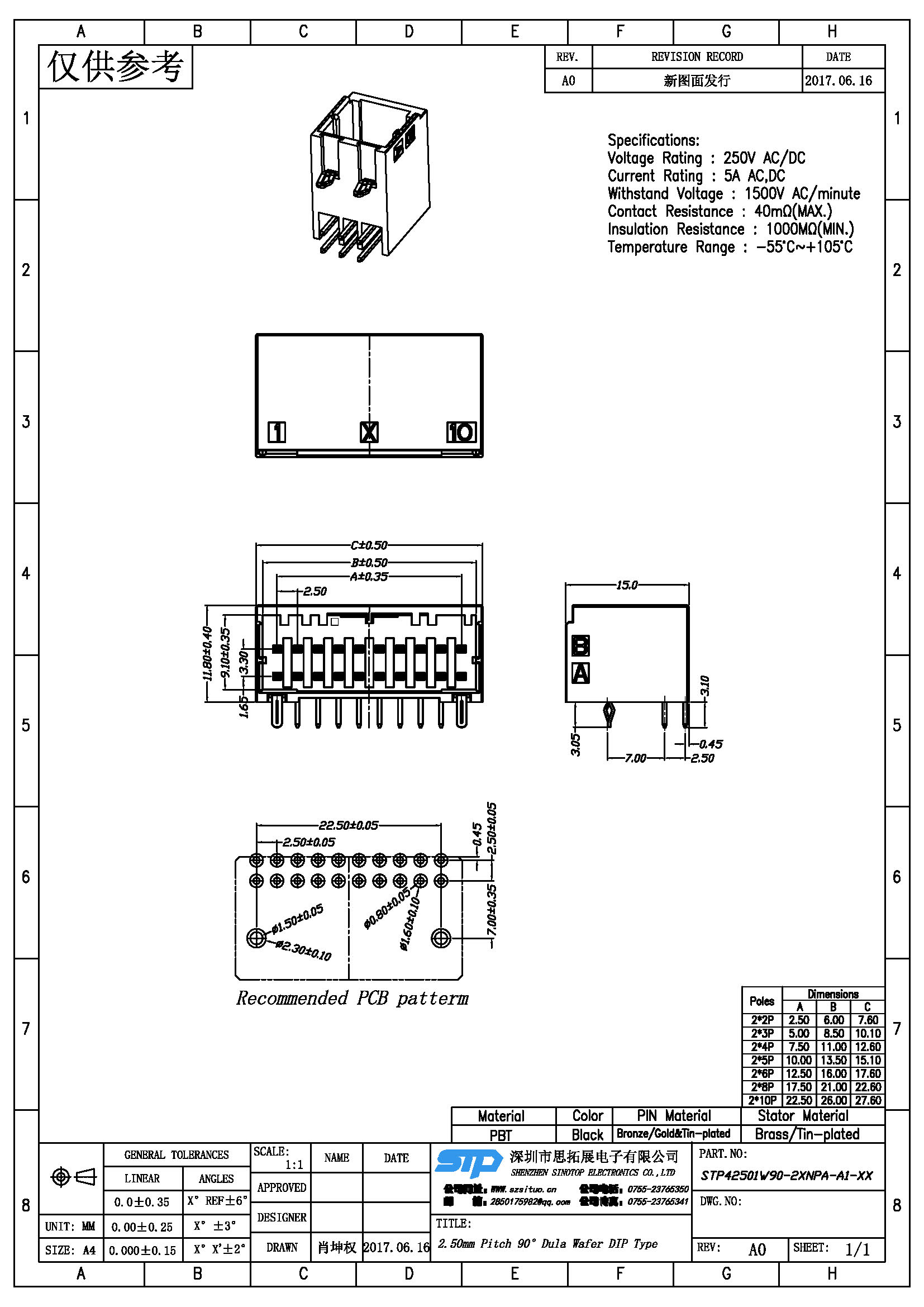 Spec:2.50mm PITCH 90° Dual WAFER DIP TYPE