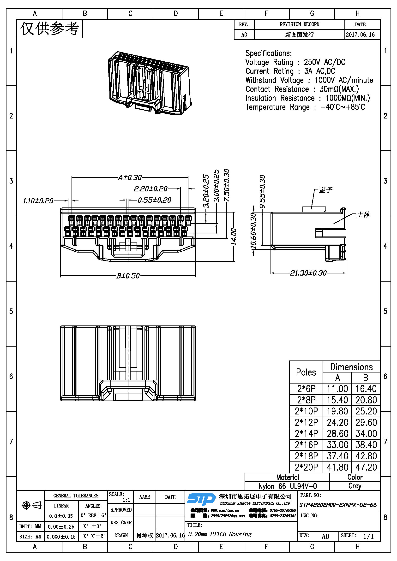 - 产品规格:2.20MM胶壳,双排线端公壳