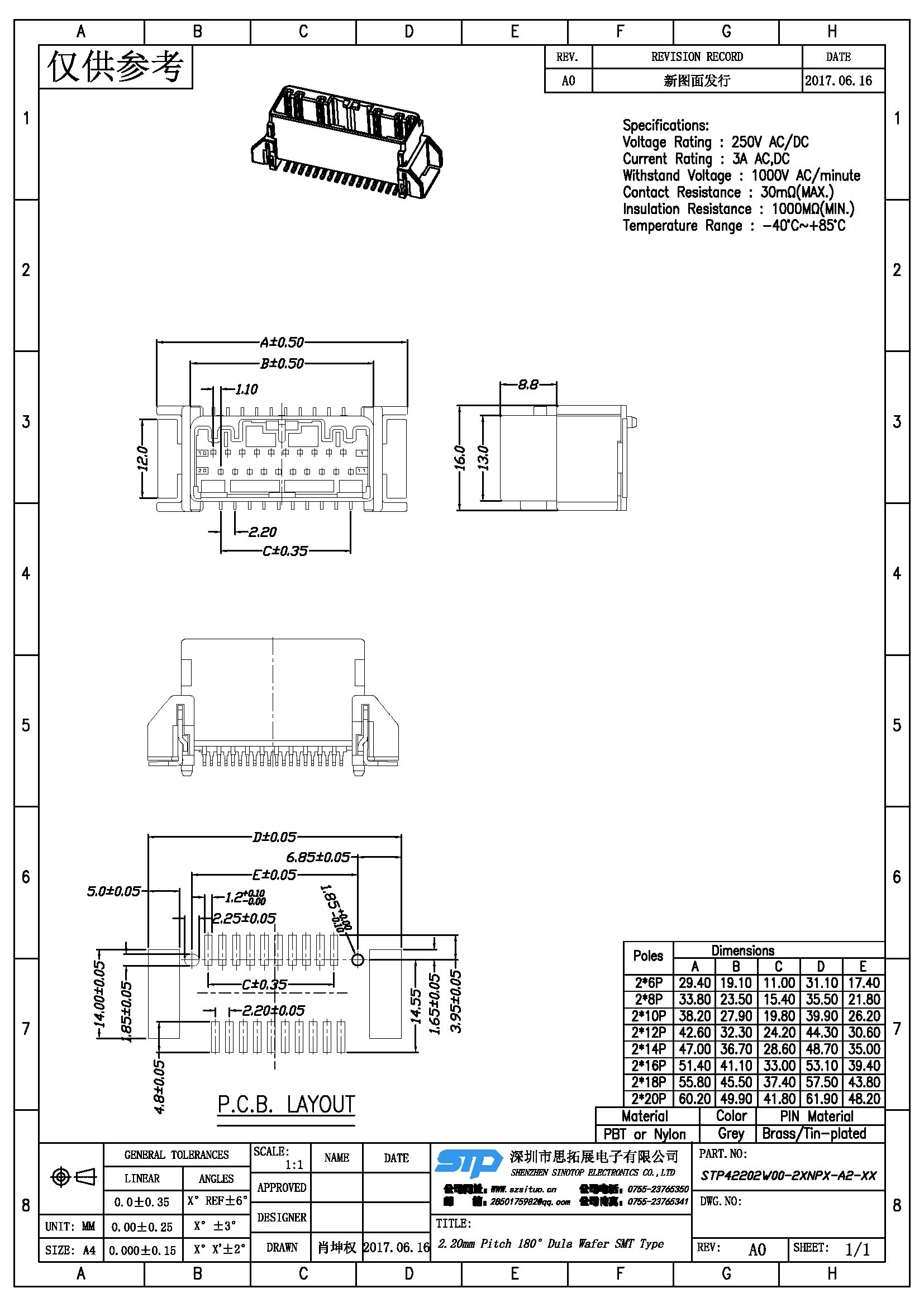 Spec:2.20mm PITCH 180° Dual WAFER SMT TYPE