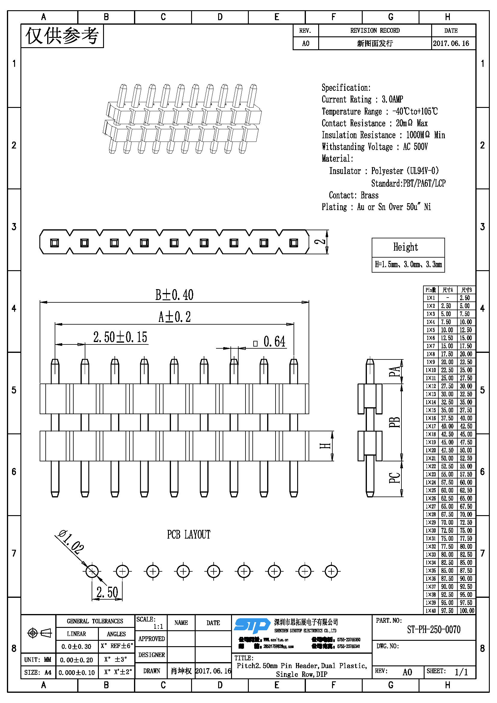 - 产品描述:PIN:1*1P-1*40P H:1.5/2.5/3.0/3.3MM