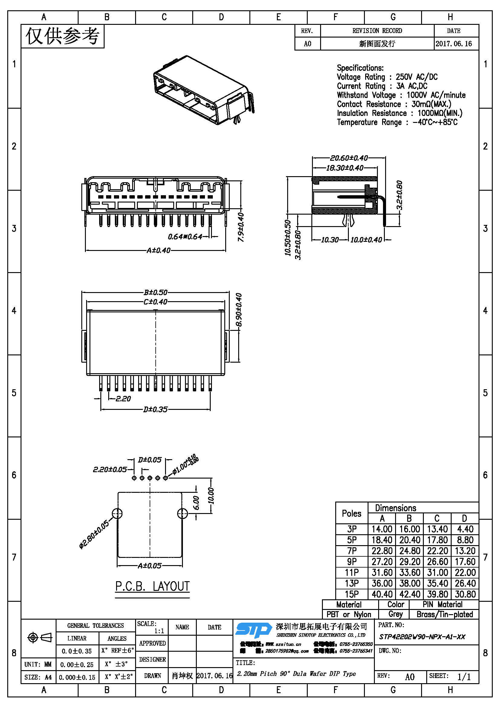 Spec:2.20mm PITCH 90° Single WAFER DIP TYPE