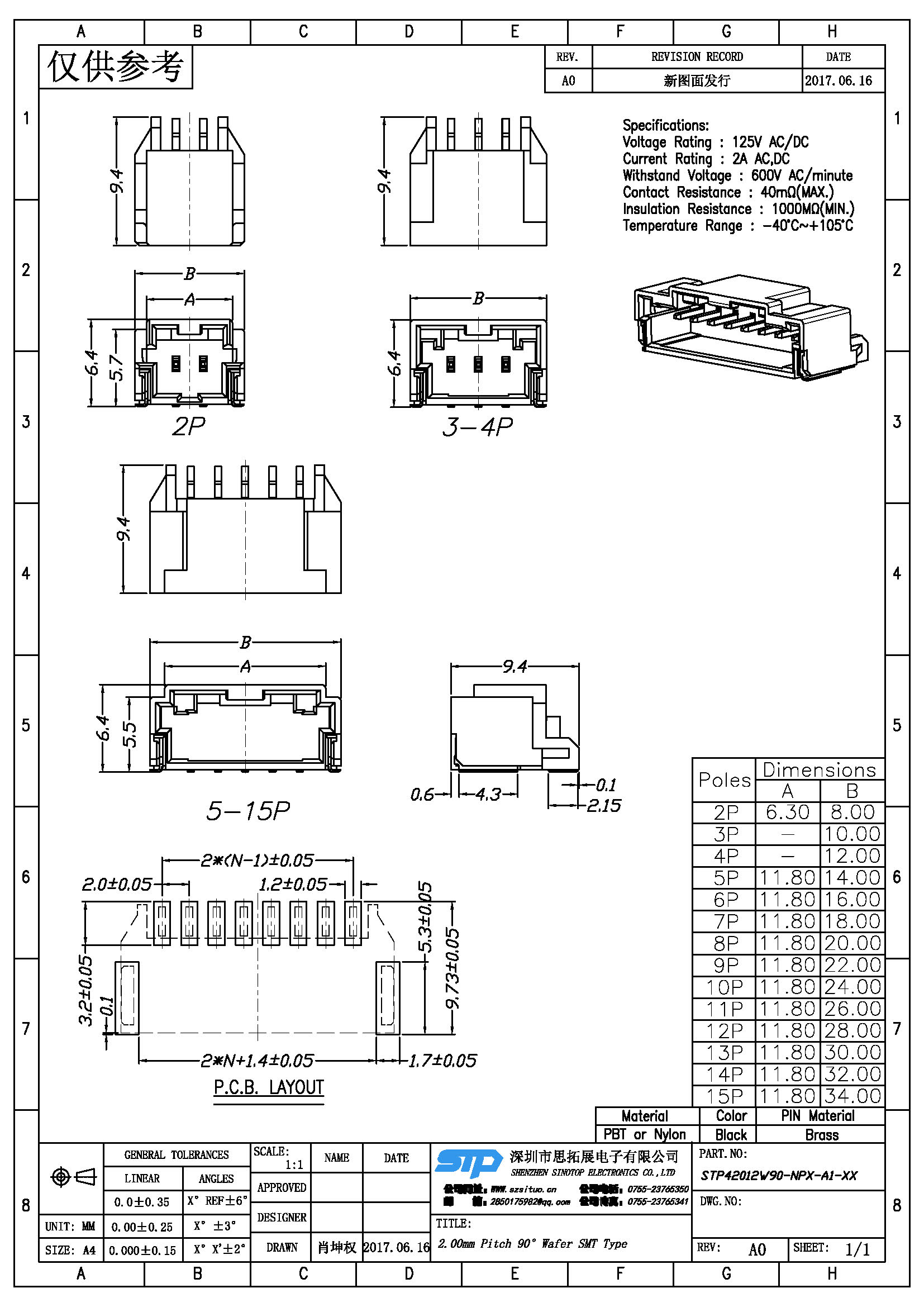 Spec:2.0mm PITCH 90° WAFER SMT TYPE