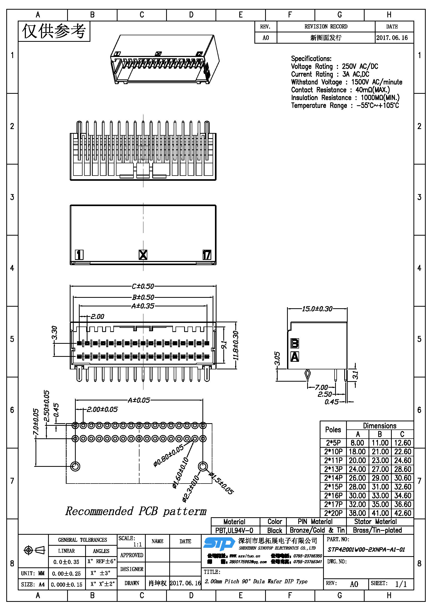 Spec:2.0mm PITCH 90° Dual WAFER DIP TYPE
