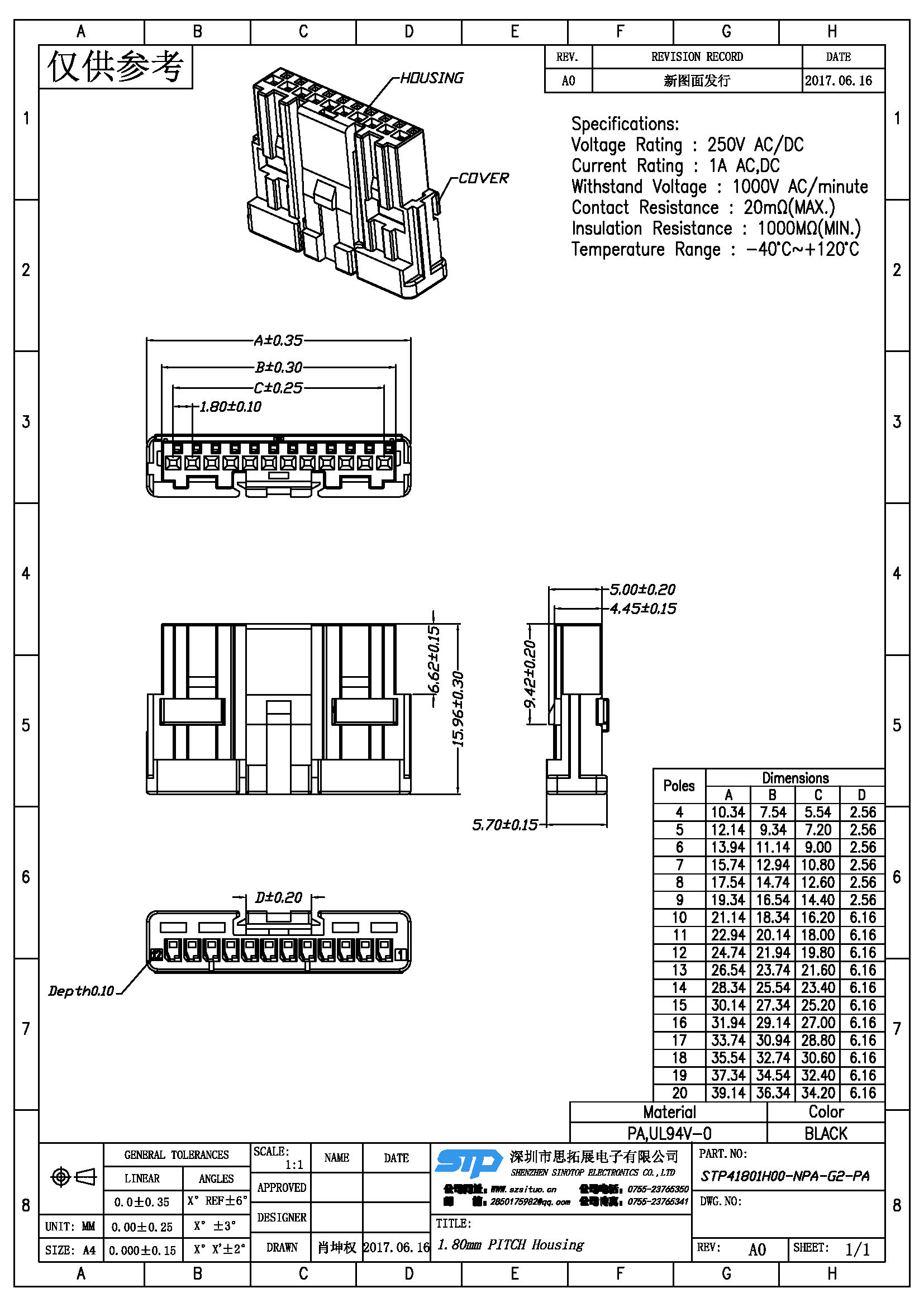 - 产品规格:1.80MM胶壳,单排线端公壳