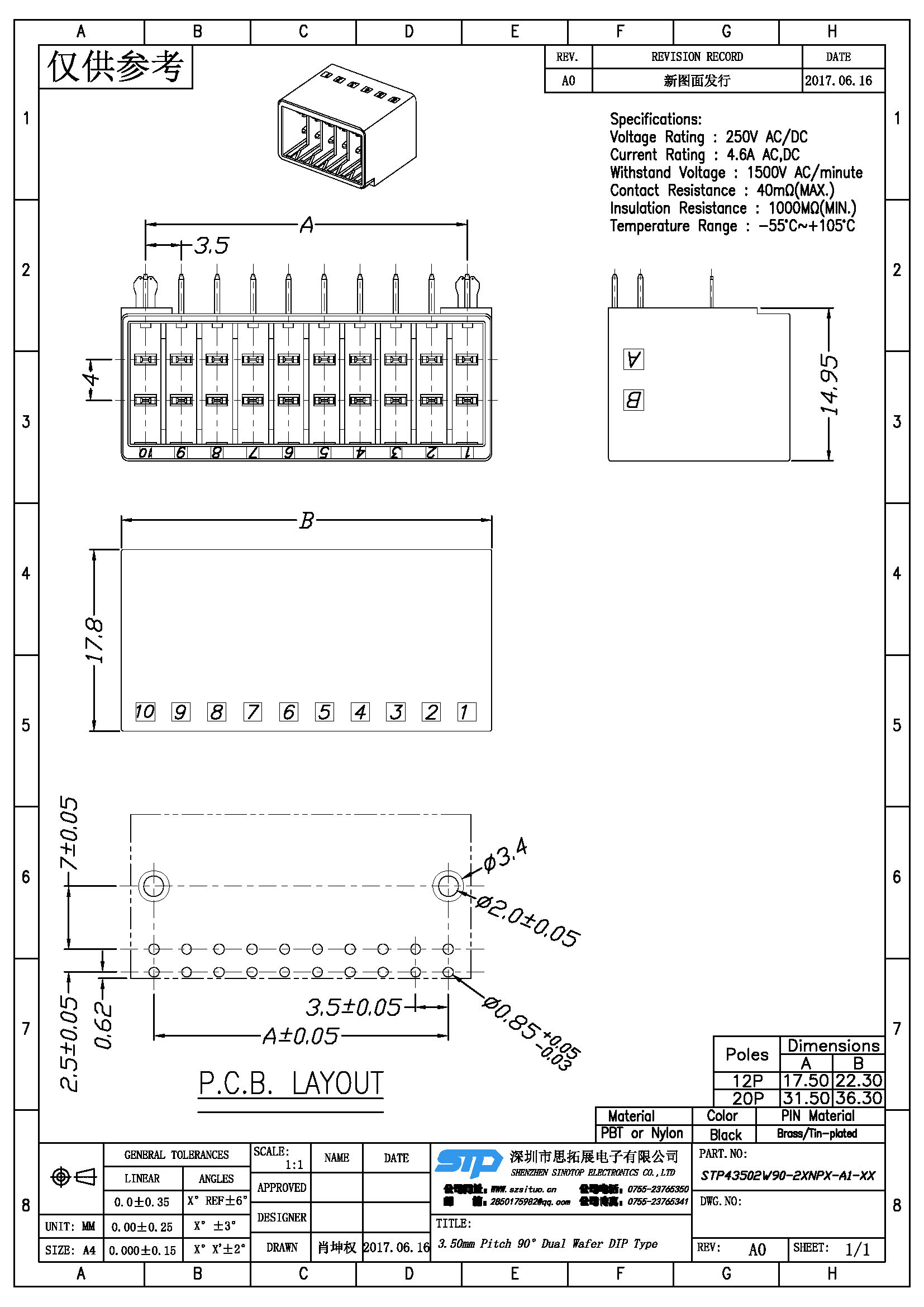 Spec:3.50mm PITCH 90° DUAL WAFER DIP TYPE