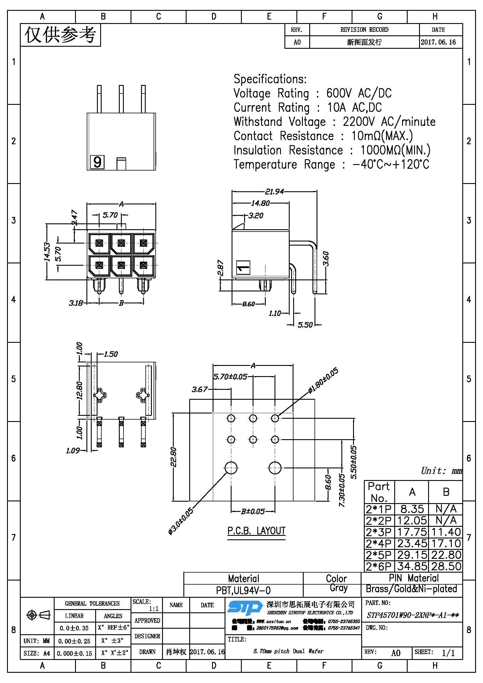 Spec:5.7mm PITCH 90° Dual WAFER DIP TYPE