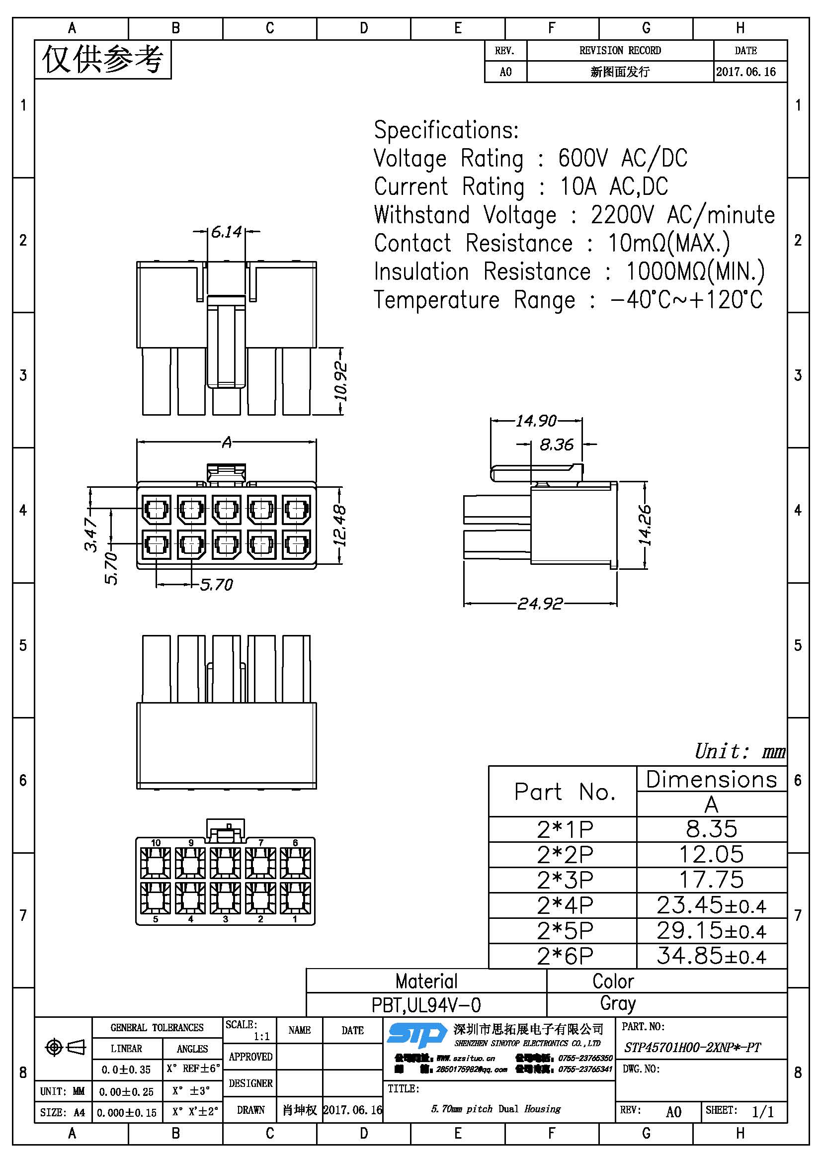 - 产品规格:5.70MM胶壳,双排,线端公壳