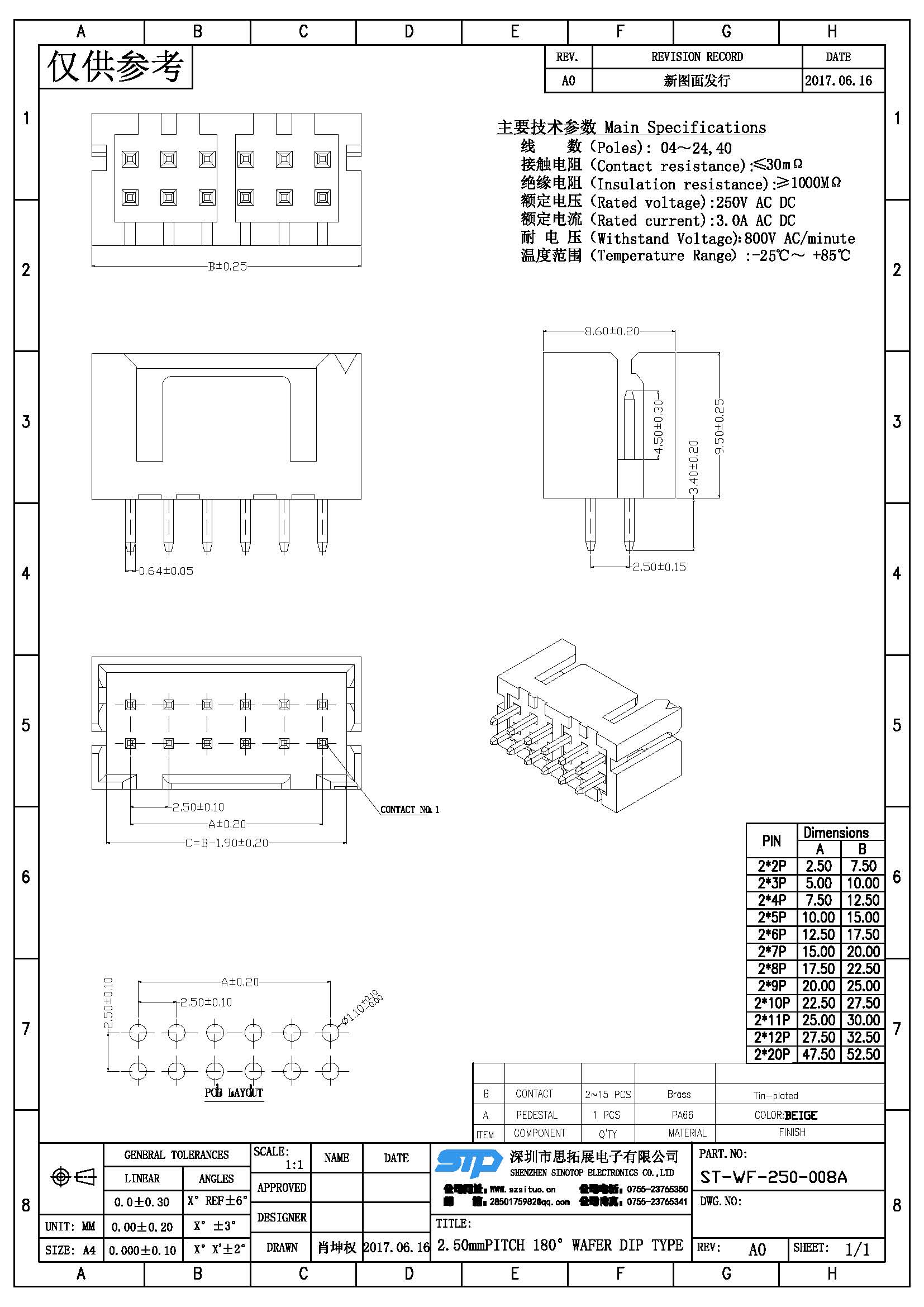 Spec:2.50mm PITCH 180° WAFER DIP TYPE