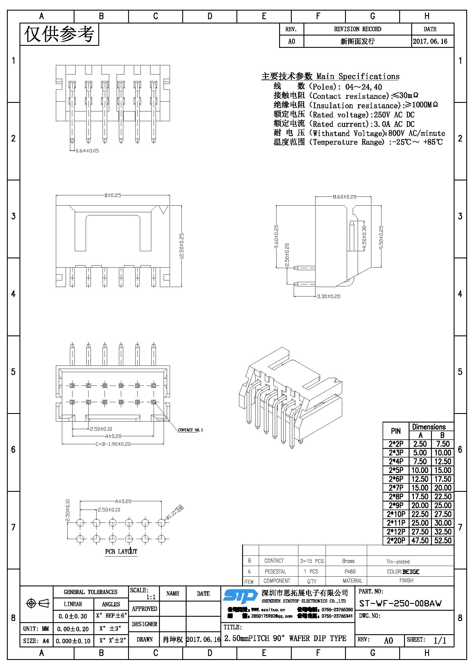 Spec:2.50mm PITCH 90° WAFER DIP TYPE