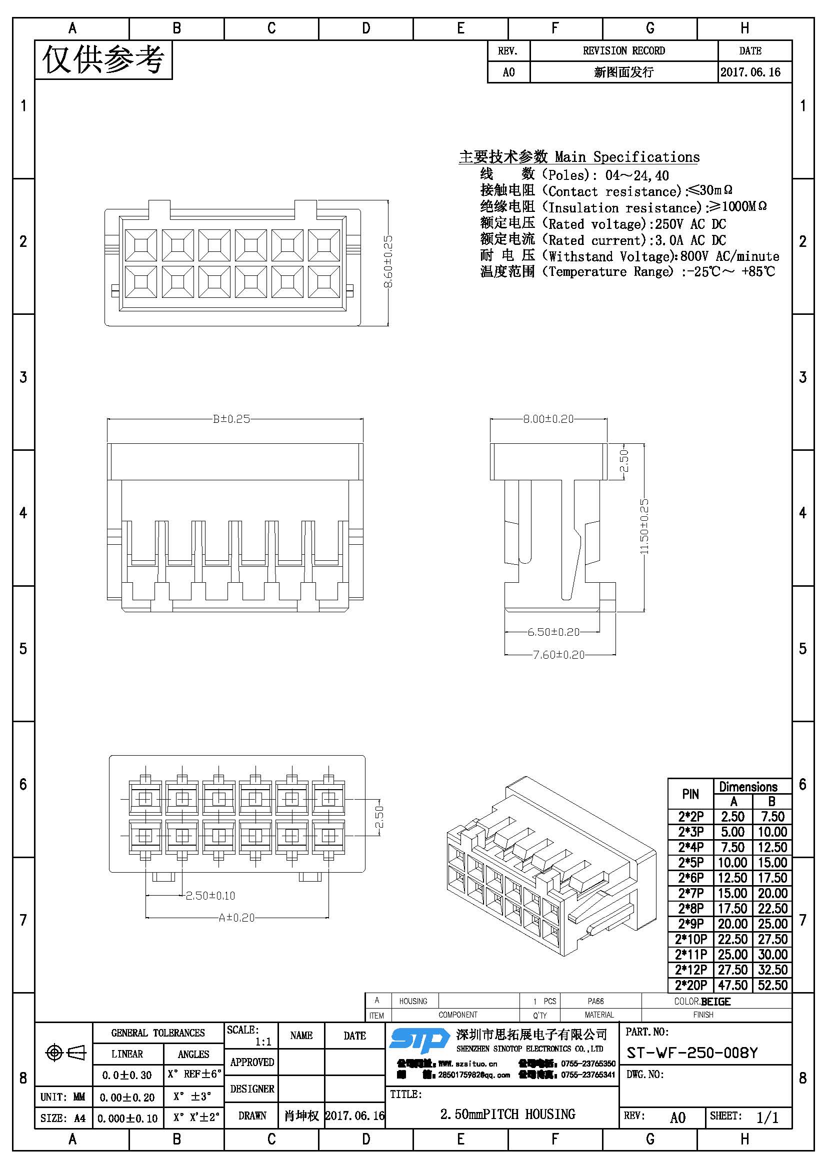 - 产品规格:2.50MM胶壳,线端公壳,双排