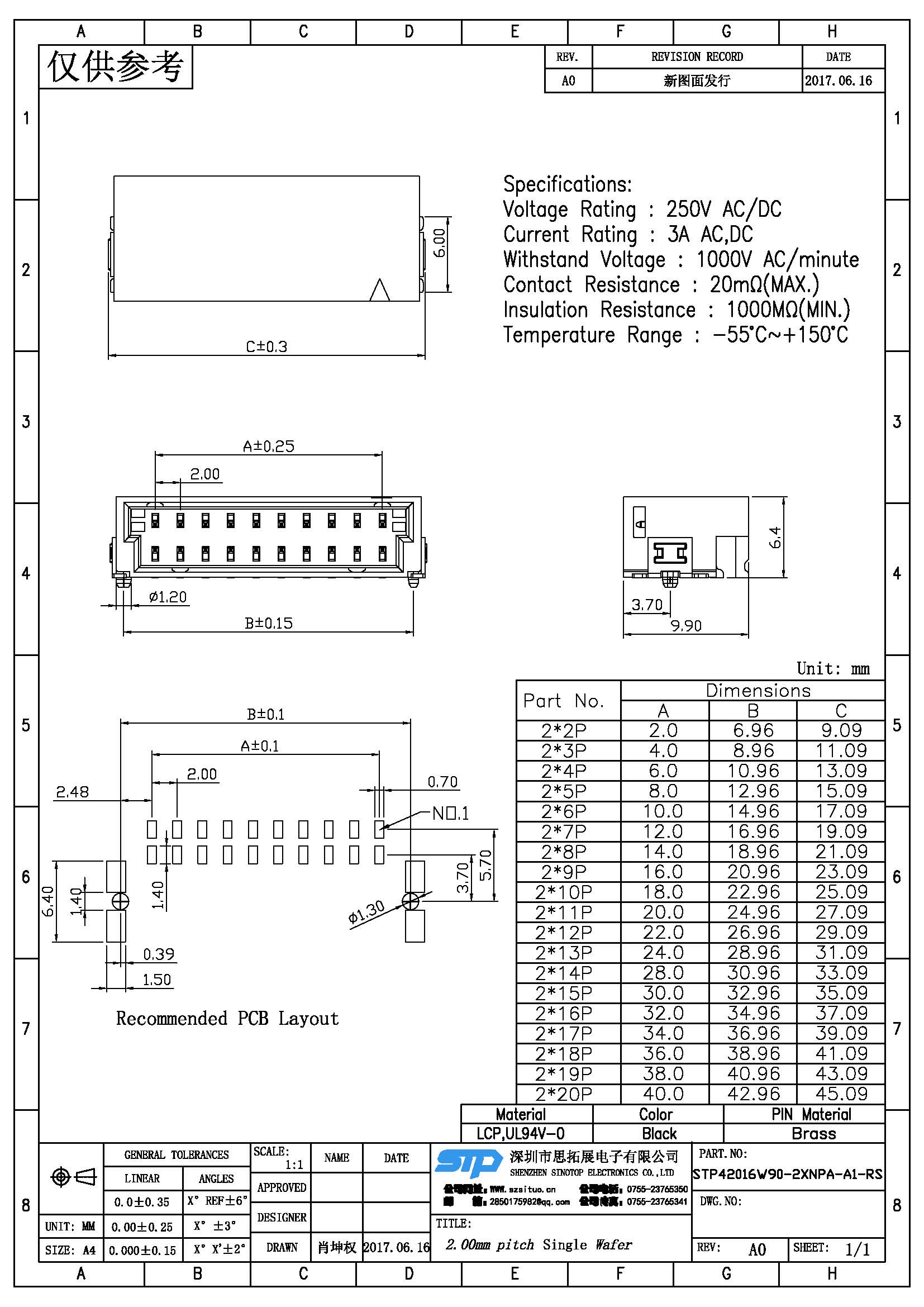 Spec:2.0mm PITCH Dual Horizotal SMT Type WAFER
