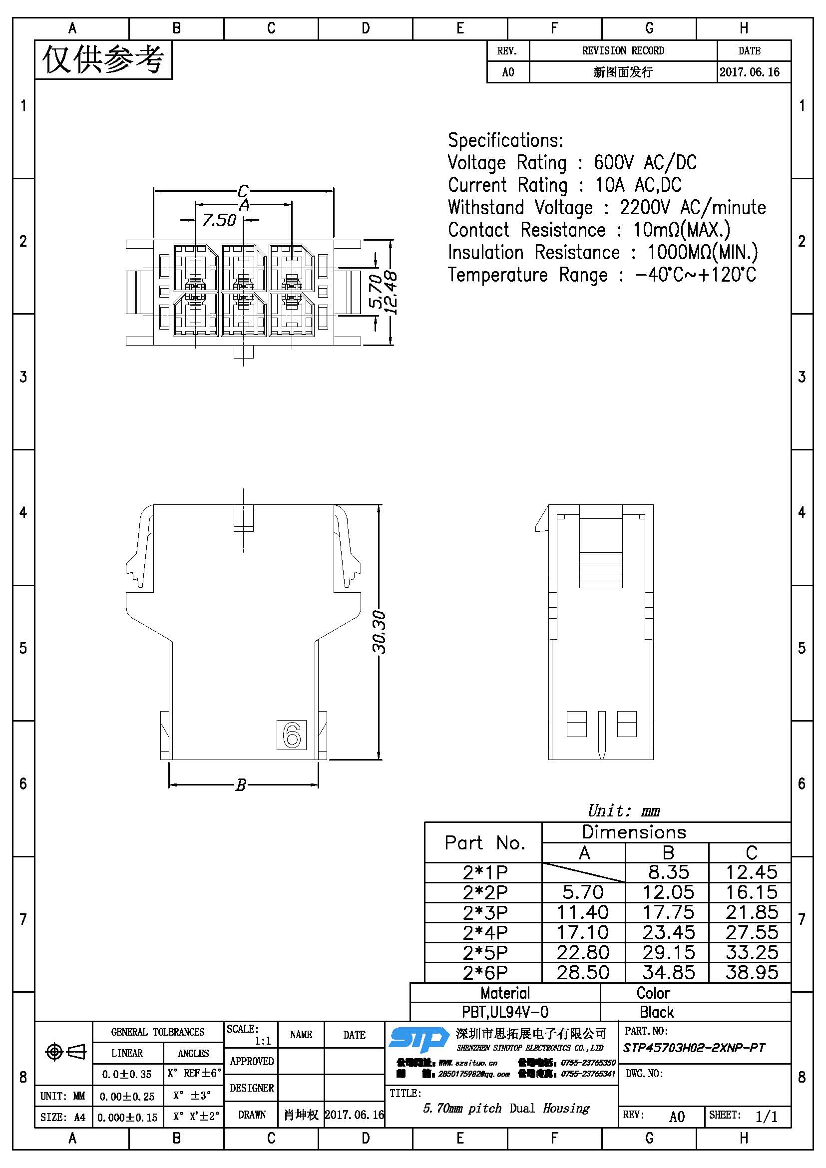 - 产品规格:5.70MM胶壳 双排空接线端胶壳