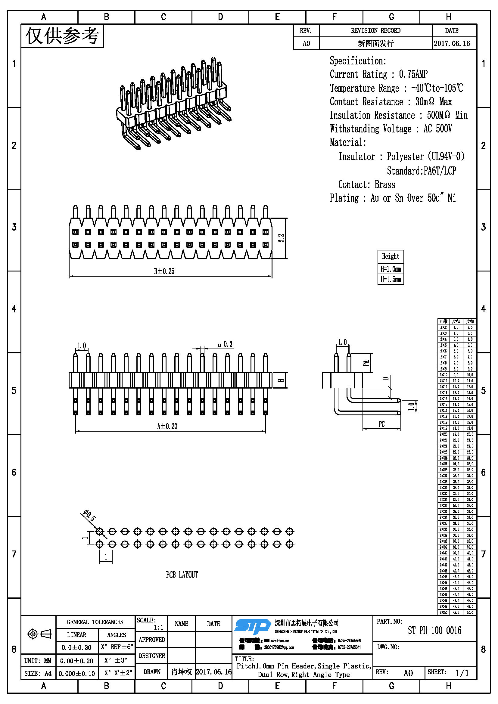 - 产品规格:1.0MM双排针,单塑,90度