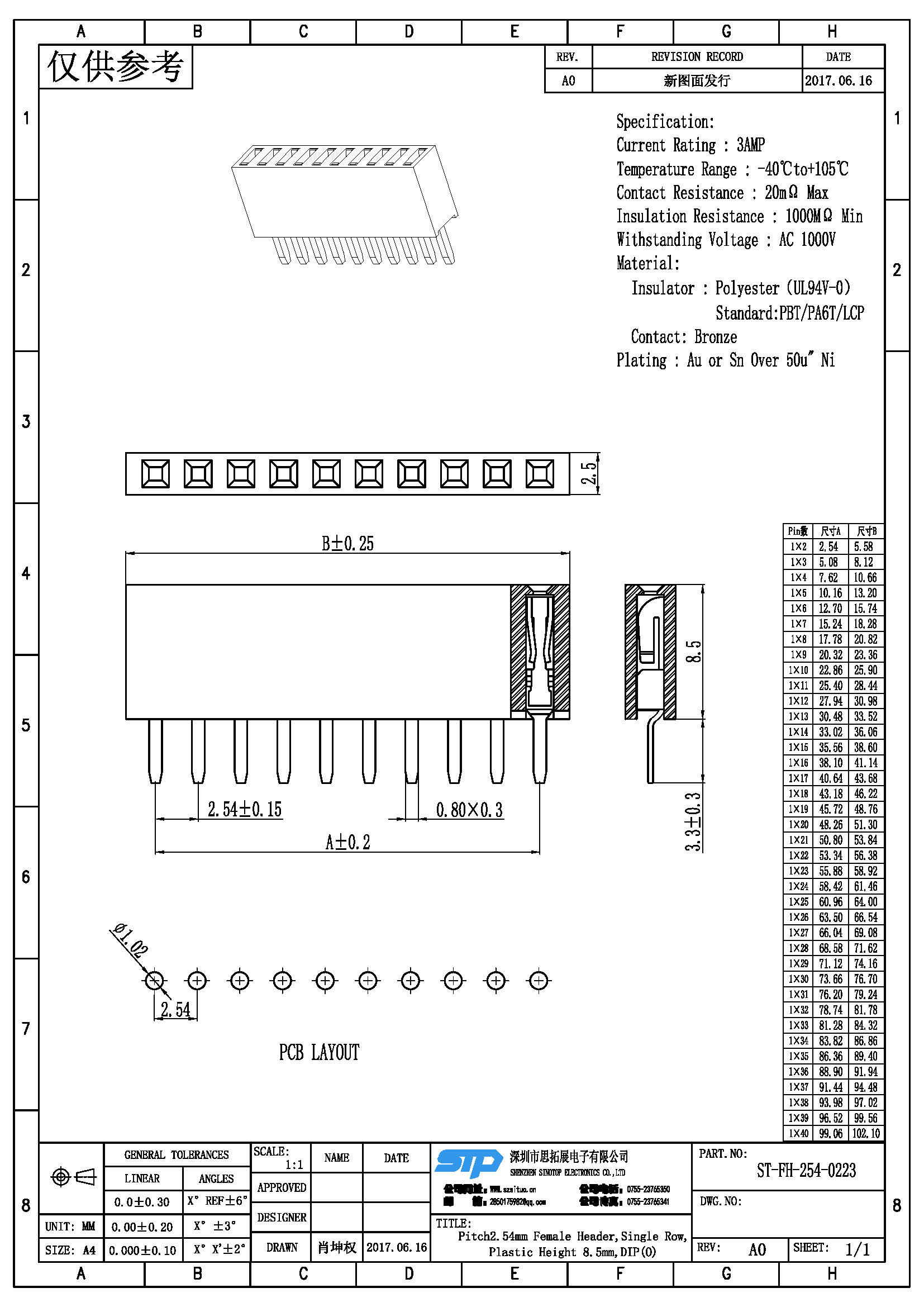 规格型号:Pitch2.54MM,单排母,DIP O端防锡
