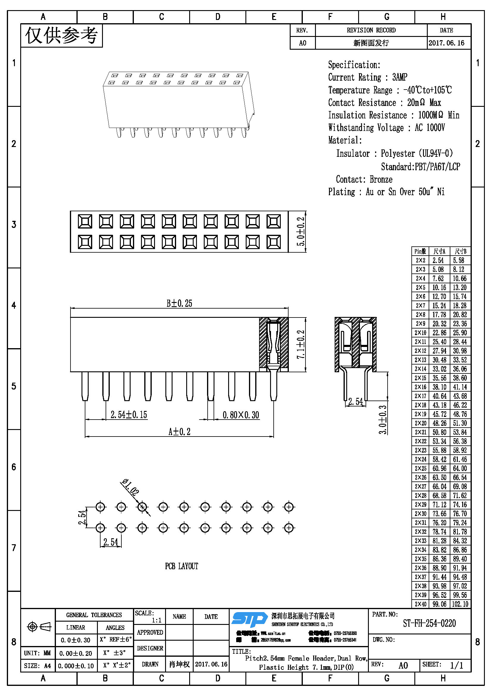 - 产品规格:2.54MM双排母,180度,O端防渗锡