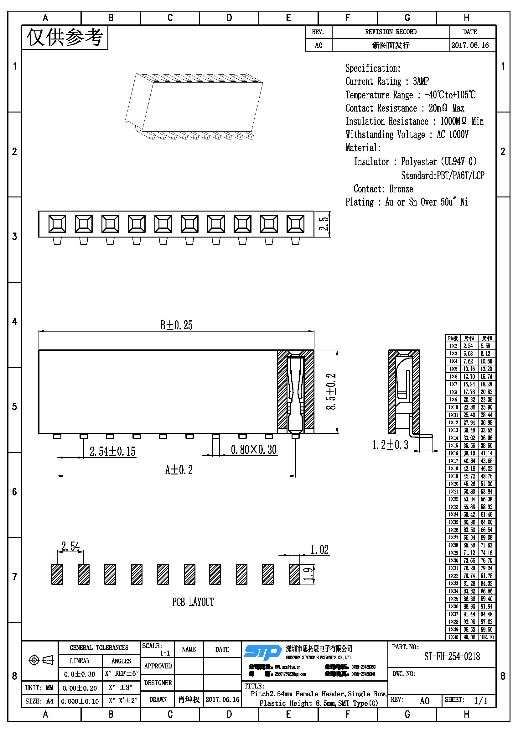 - 产品规格:2.54MM单排母,SMT,O型端子