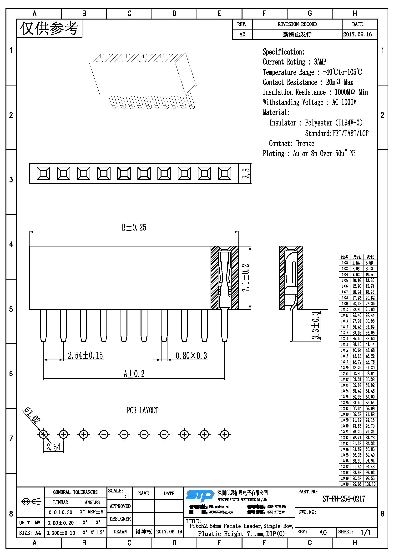 规格型号:Pitch2.54MM,单排母,DIP O端防锡