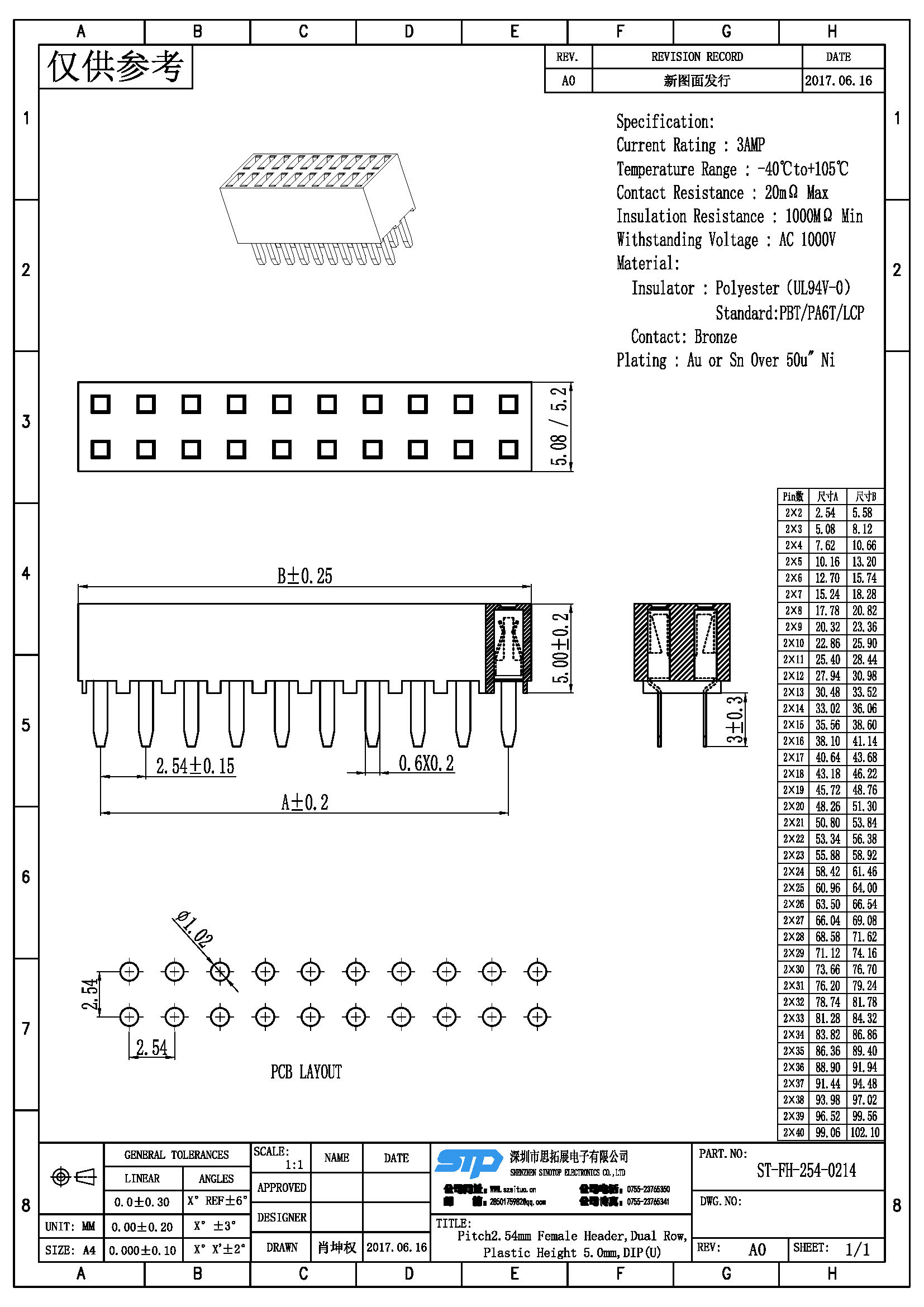 - 产品规格:2.54MM双排母,180度,U端防渗锡