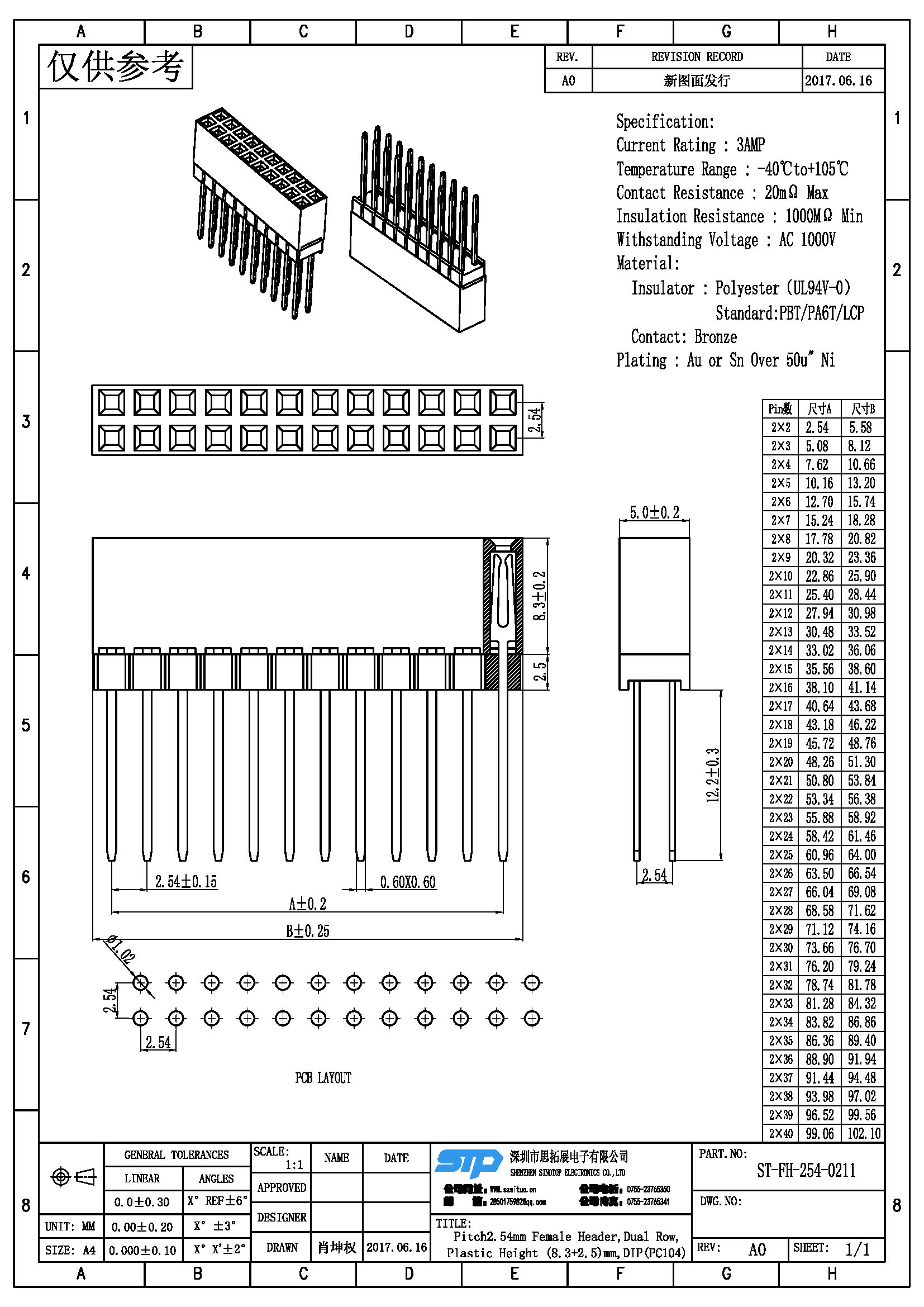Spec:Pitch2.54MM Female Header,Dual Row, DIP Type (PC104)