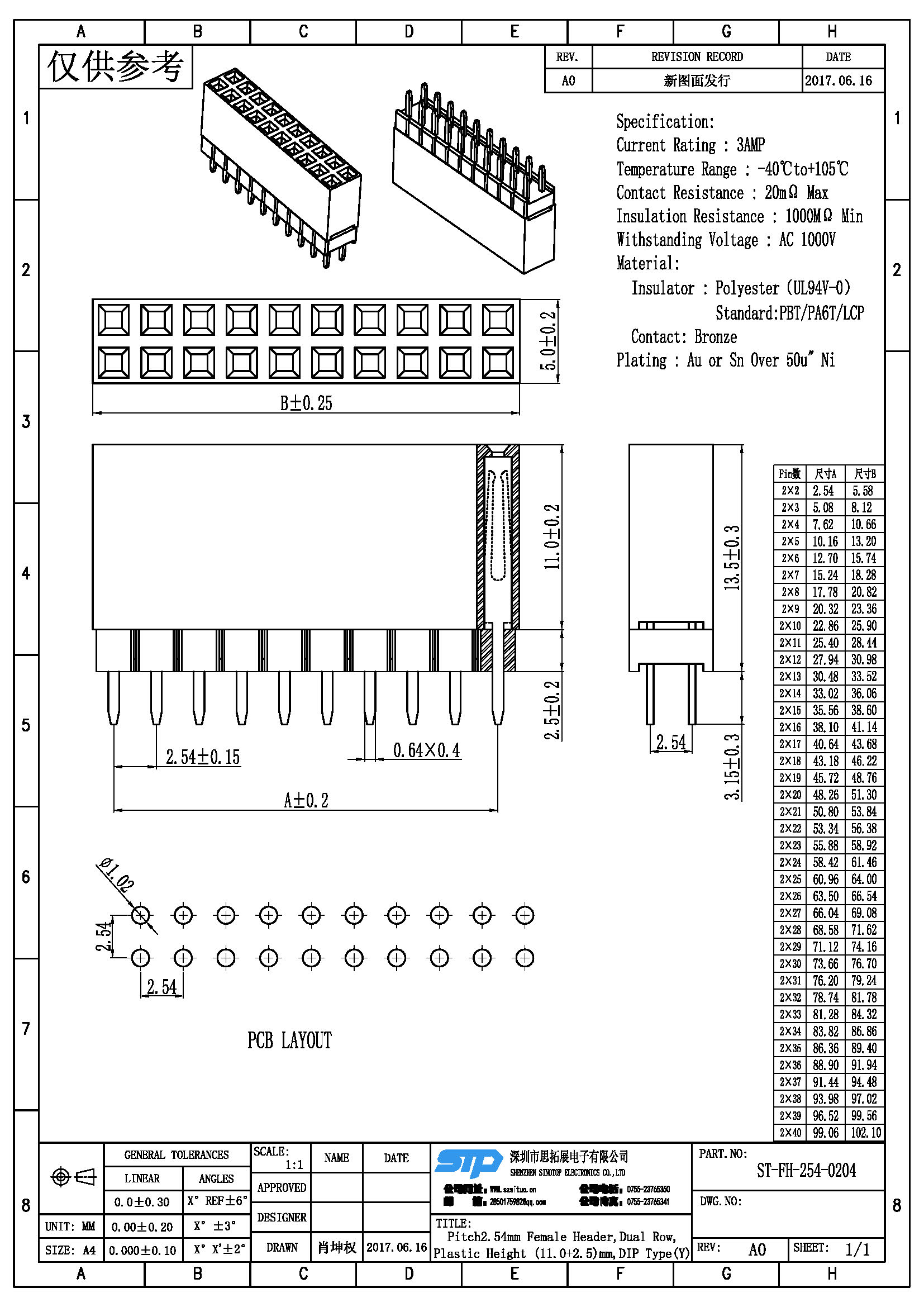 规格型号:Pitch2.54MM,双排母,DIP加高 Y端