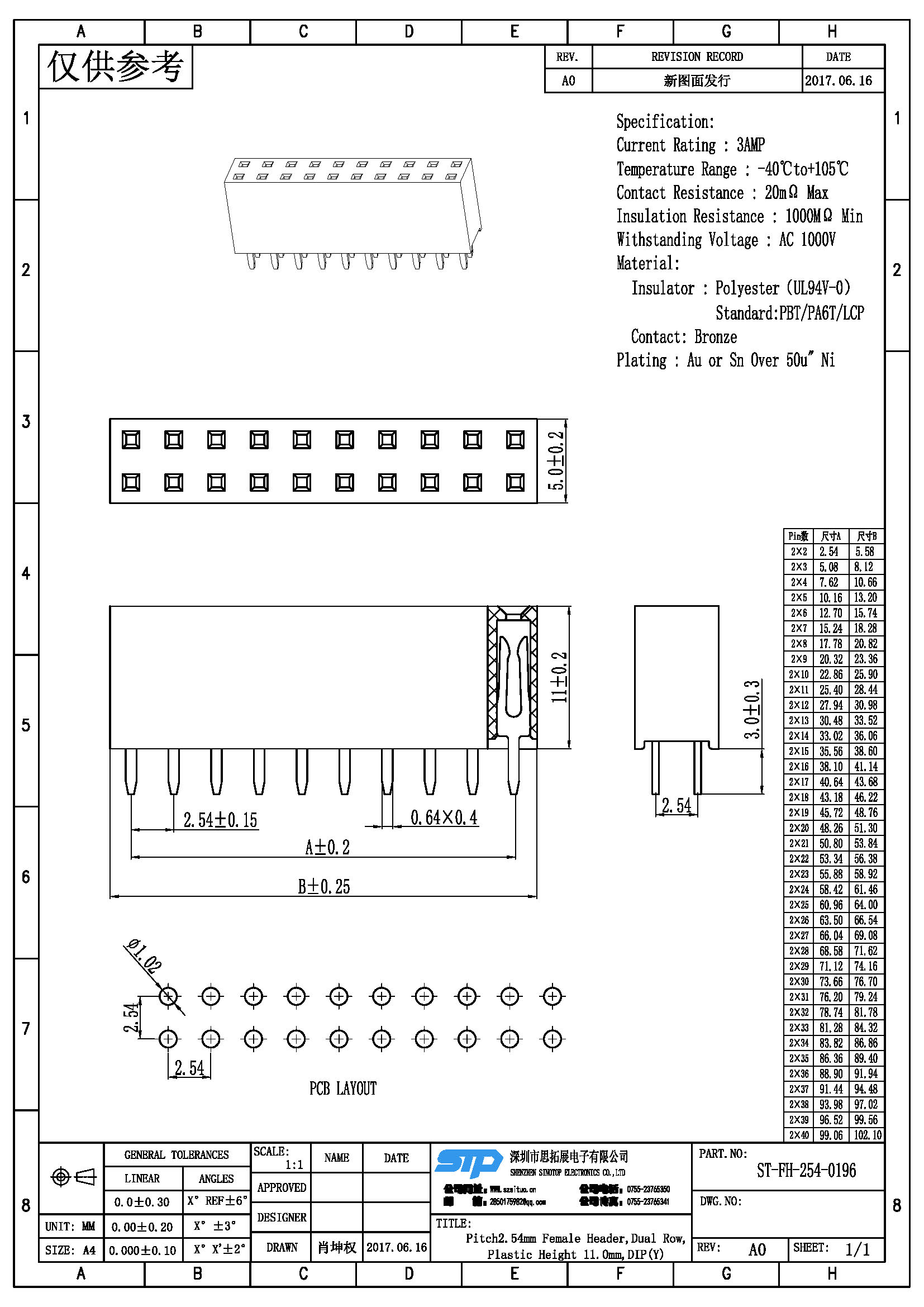 规格型号:Pitch2.54MM,双排母,DIP Y端