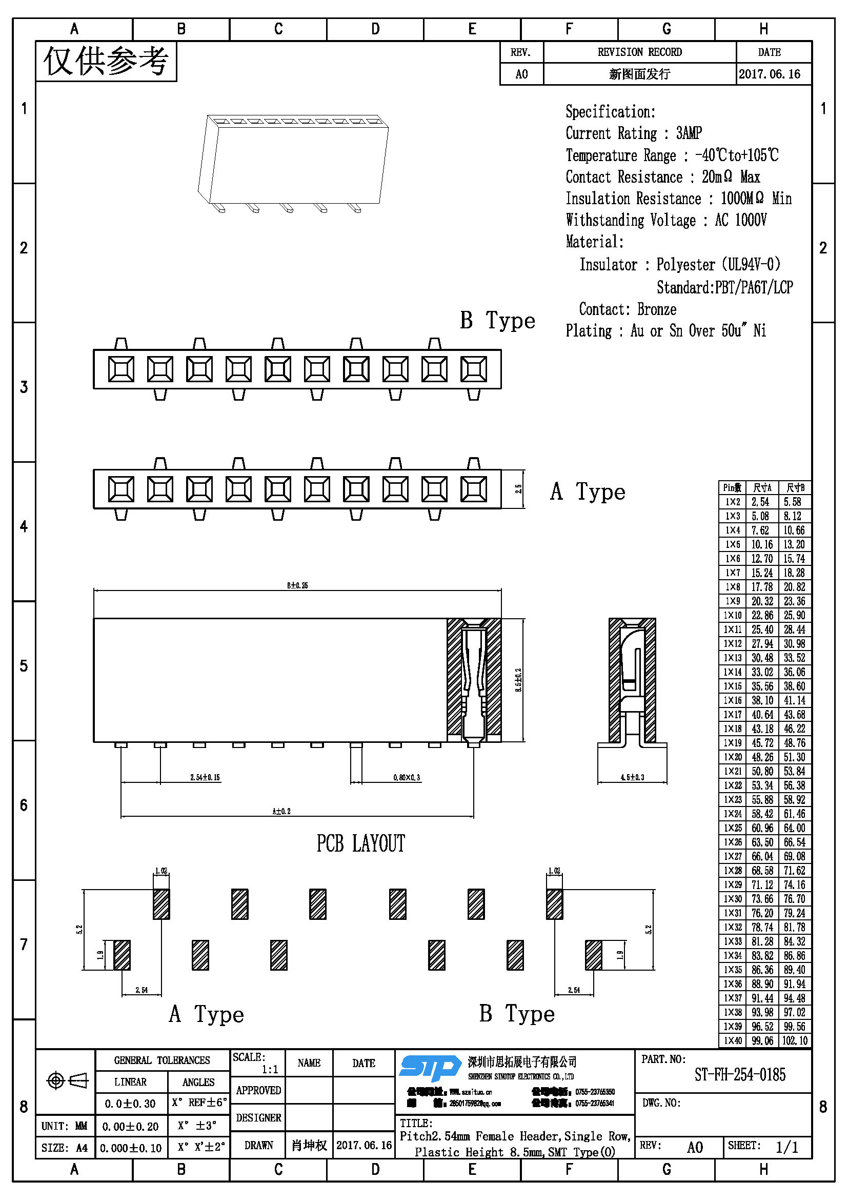Spec:Pitch2.54MM Female Header,Single Row, SMT Type (O)