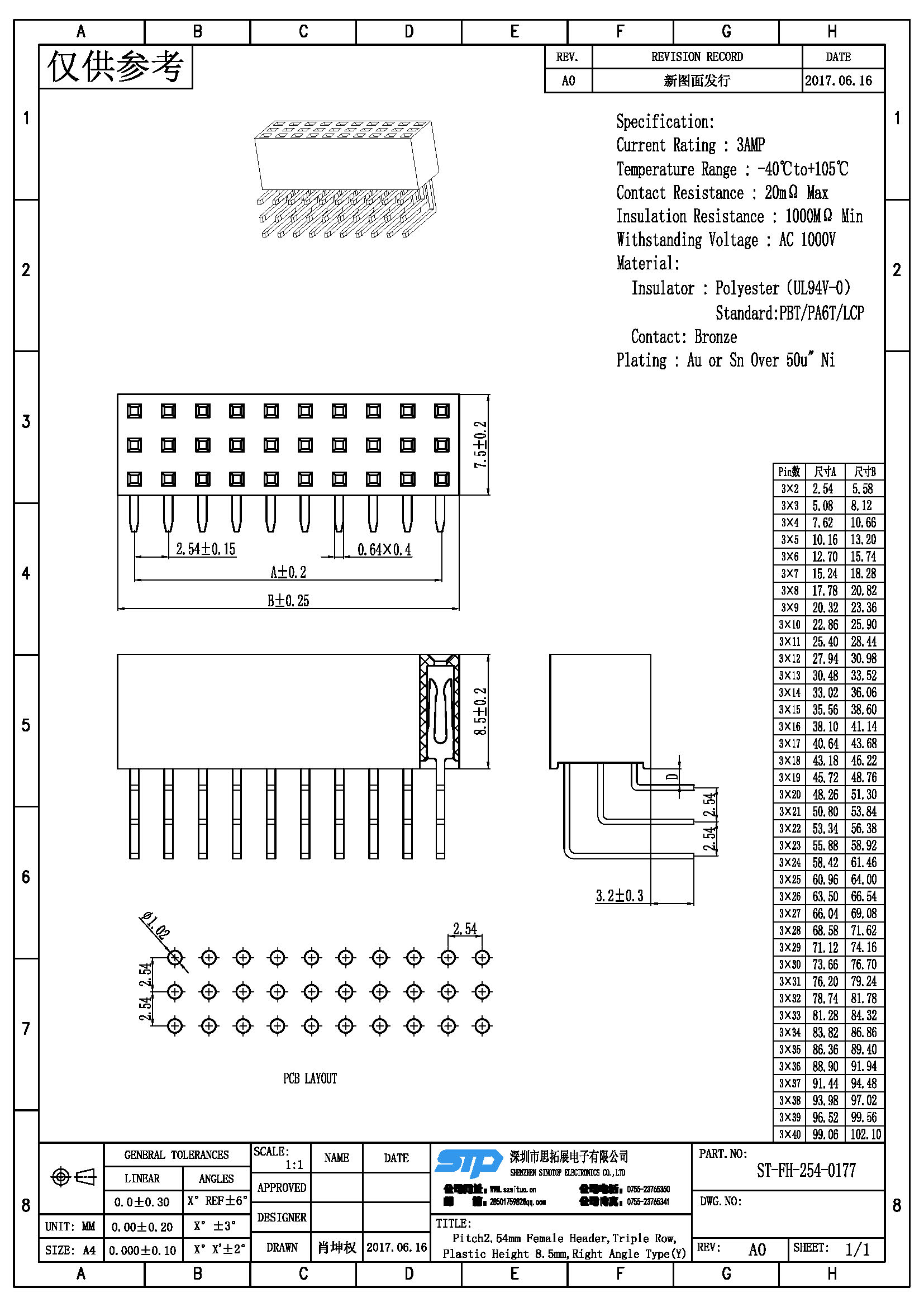Spec:Pitch2.54MM Female Header,Triple Row, Right Angle Type (Y)