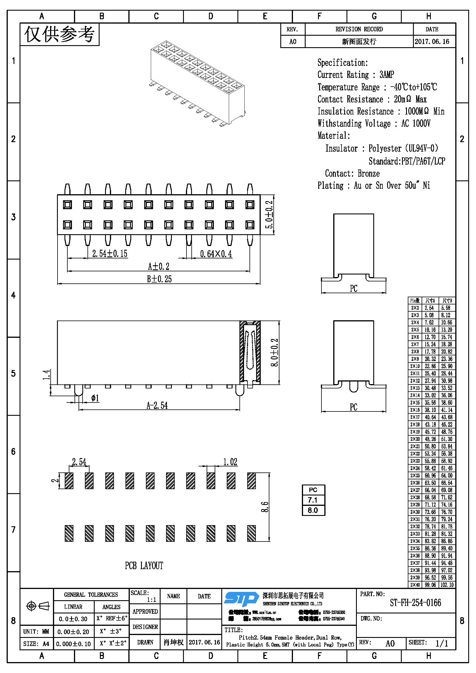 - 产品规格:2.54MM双排母,SMT,Y型端子
