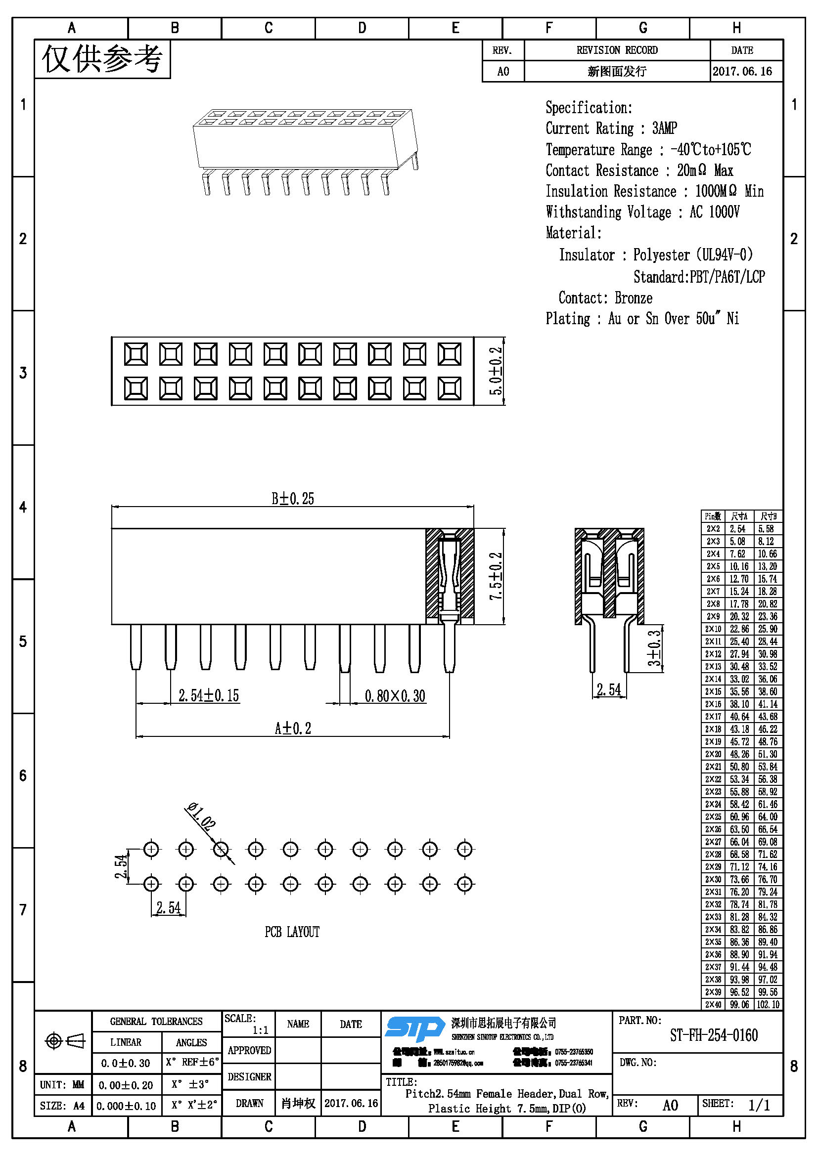 规格型号:Pitch2.54MM,双排母,DIP O端