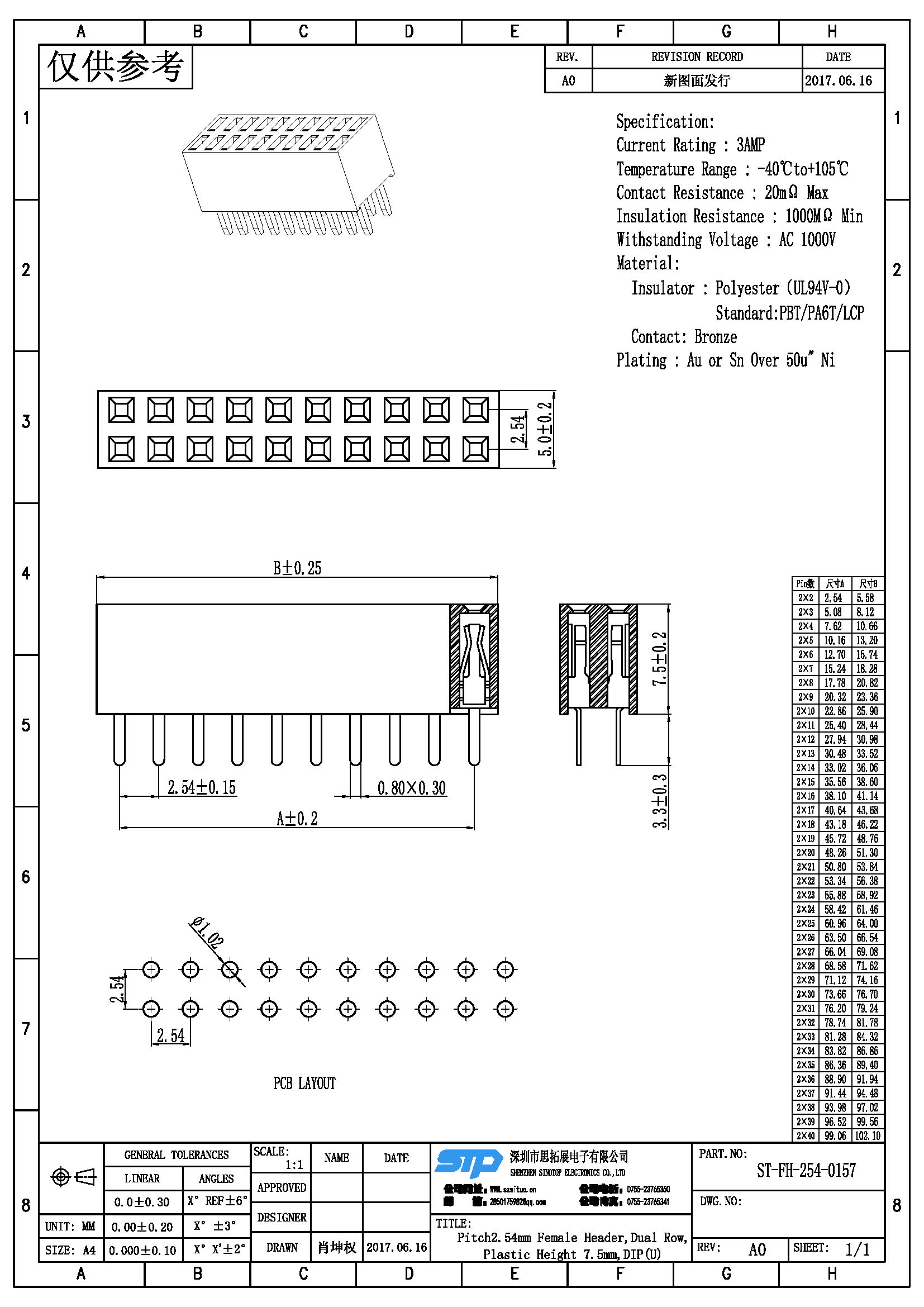 规格型号:Pitch2.54MM,双排母,DIP U端