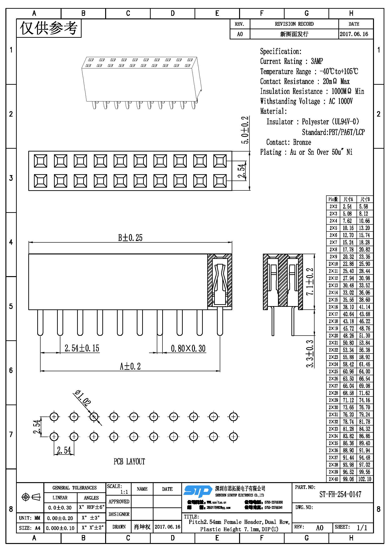 规格型号:Pitch2.54MM,双排母,DIP U端