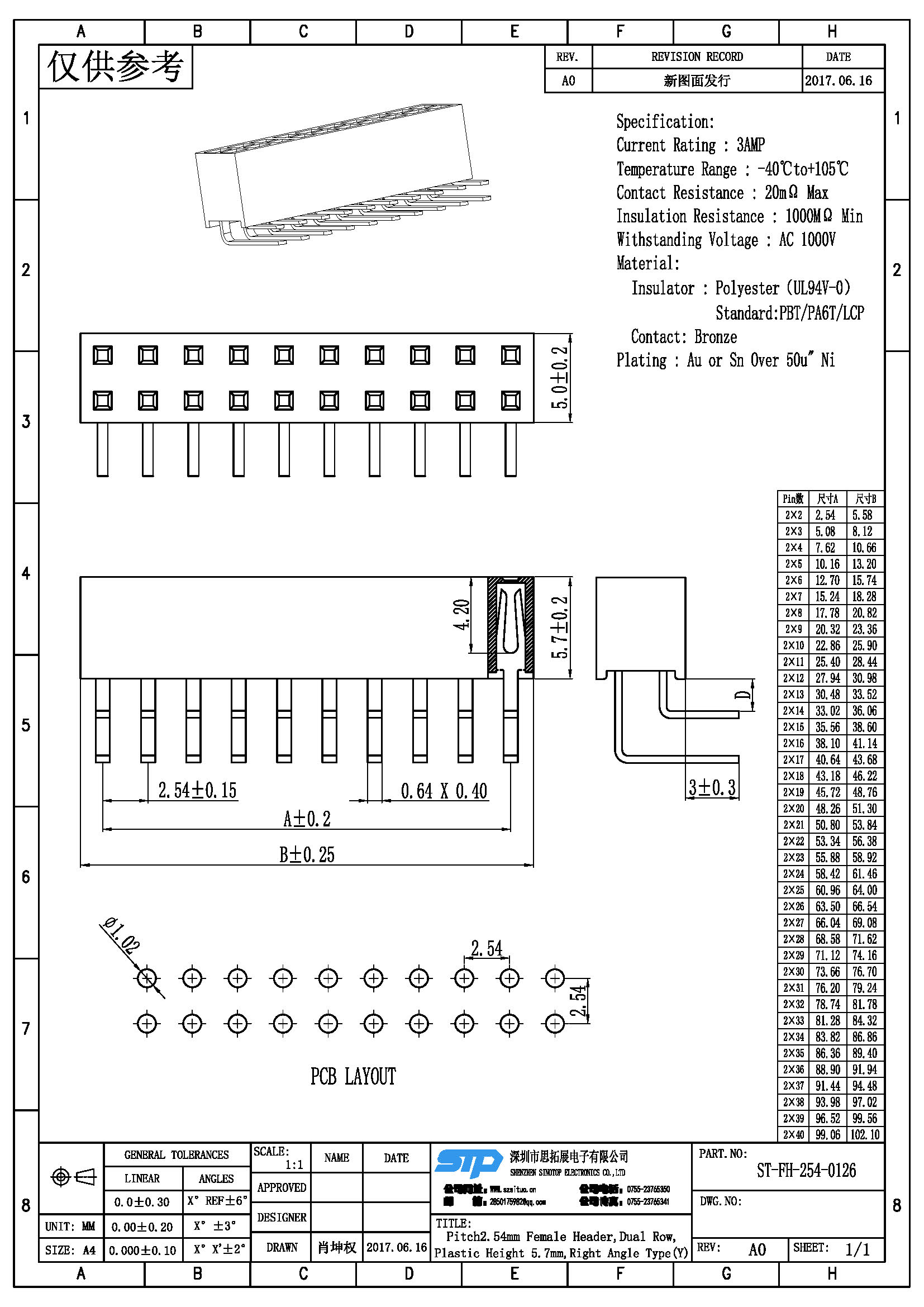 规格型号:Pitch2.54MM,双排母,弯针 Y端