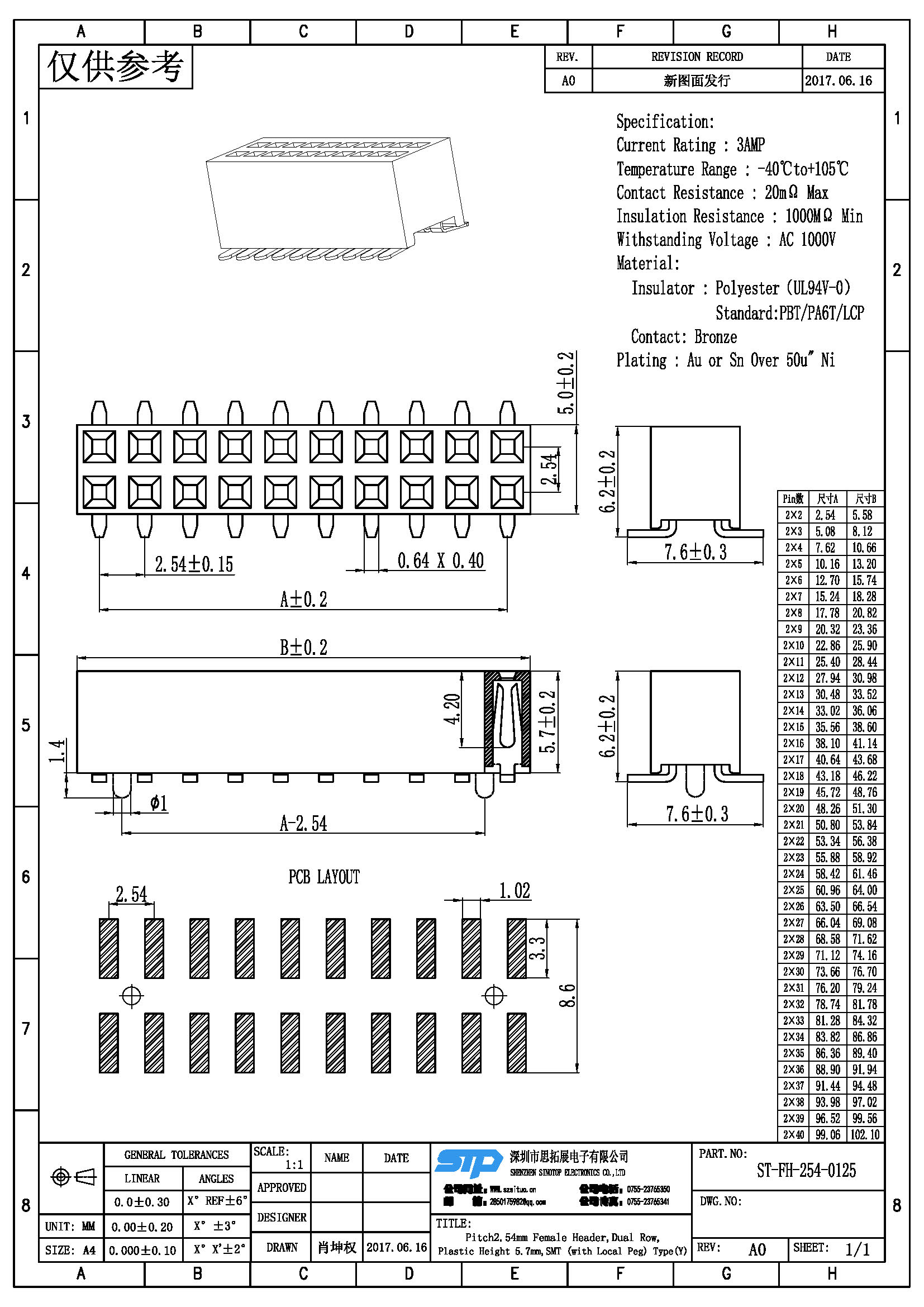 - 产品规格:2.54MM双排母,SMT,Y型端子