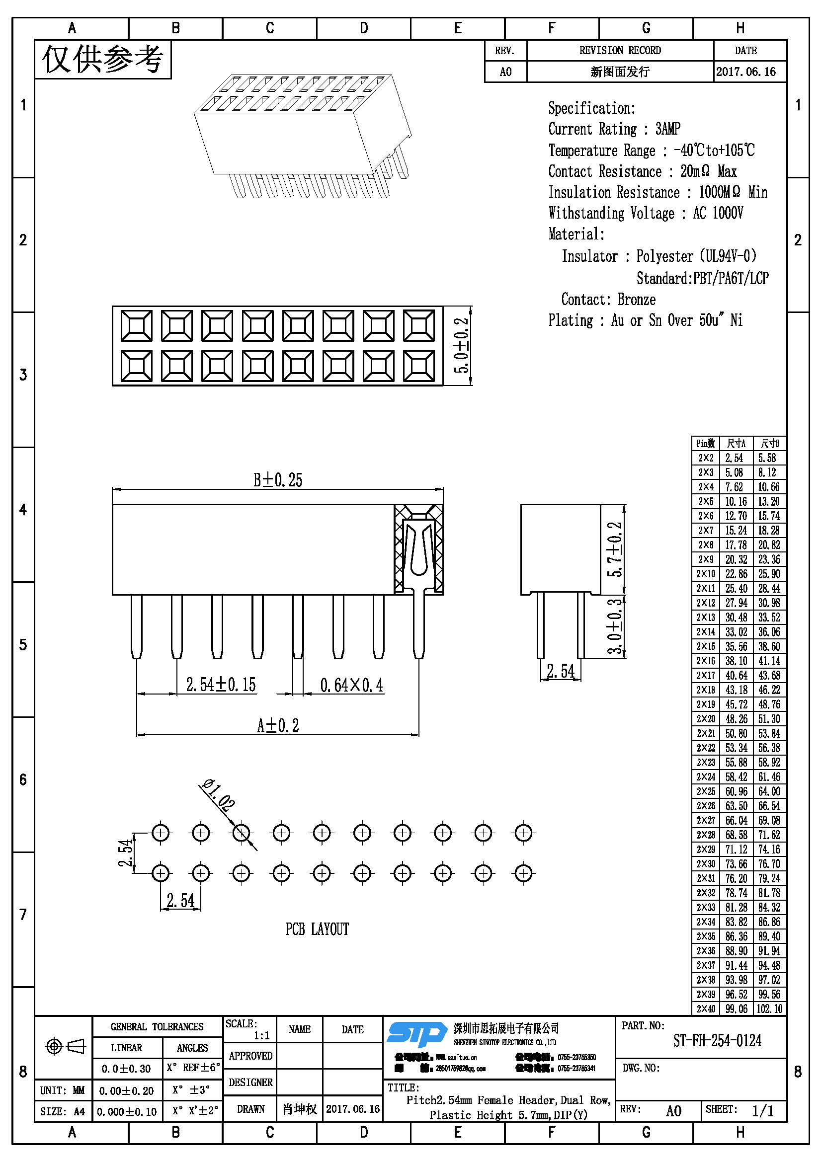 规格型号:Pitch2.54MM,双排母,DIP Y端