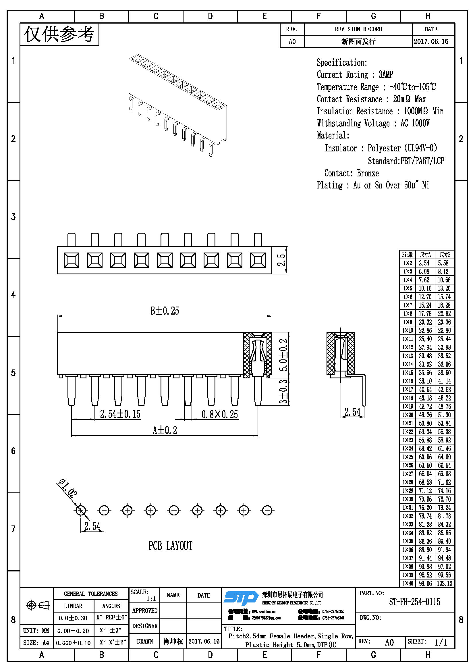 - 产品规格:2.54MM单排母,蜈蚣脚,U型端子